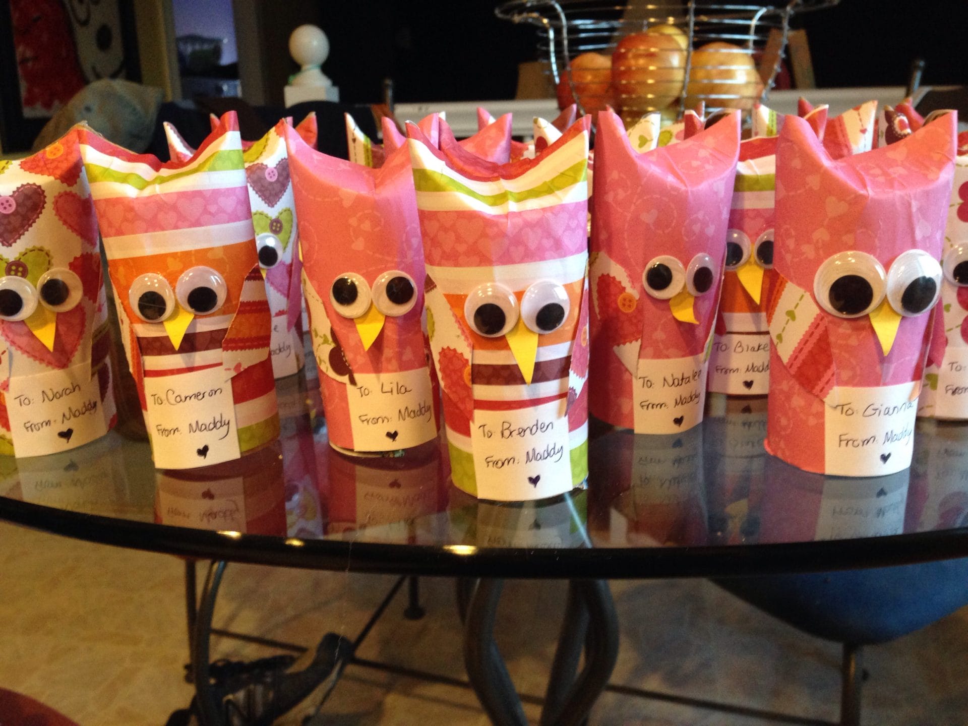 Mommy & I made these owls for my friends at school… My Valentine party is today!