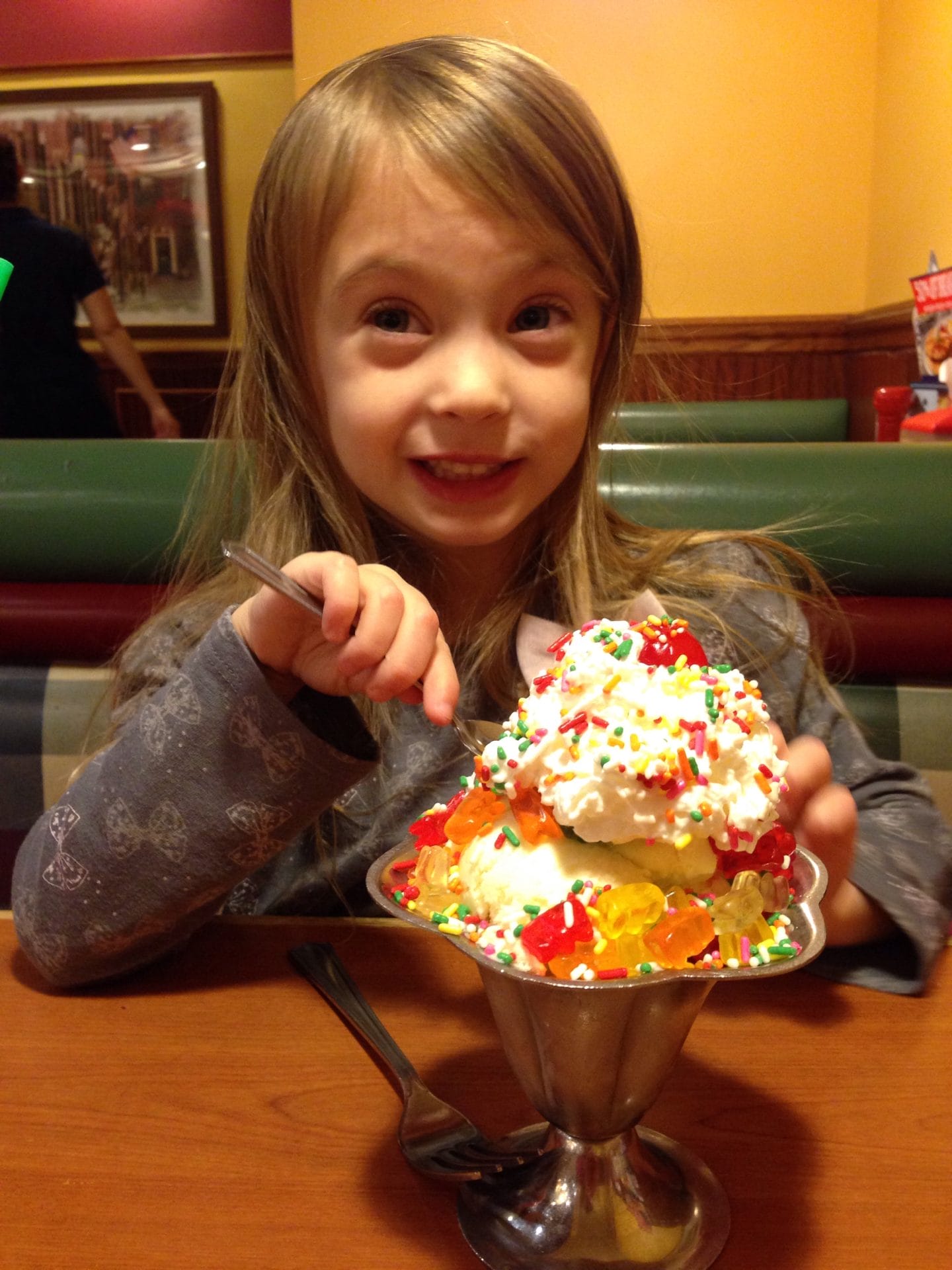 Daddy worked late, so we went to dinner together at Friendly’s.