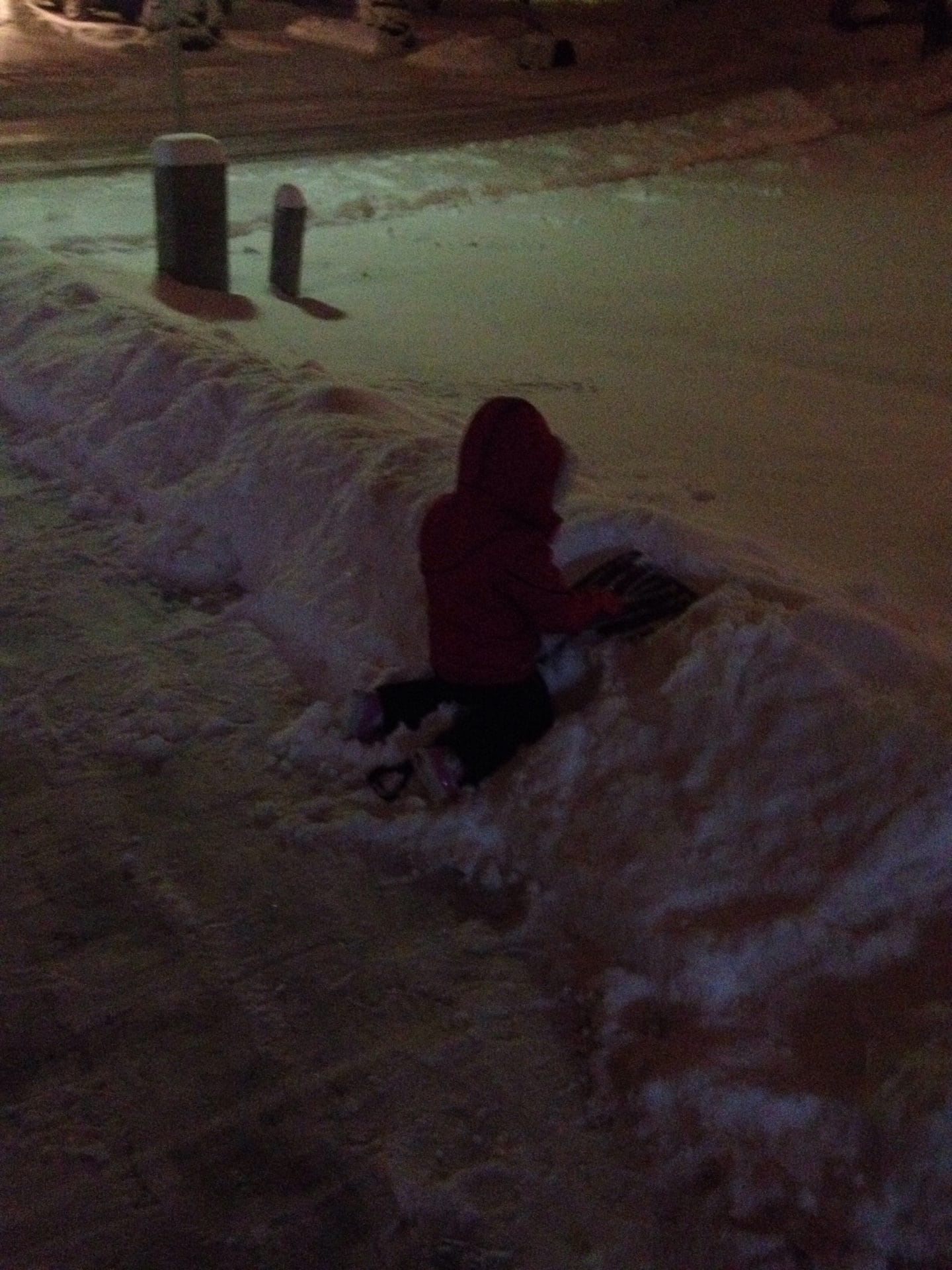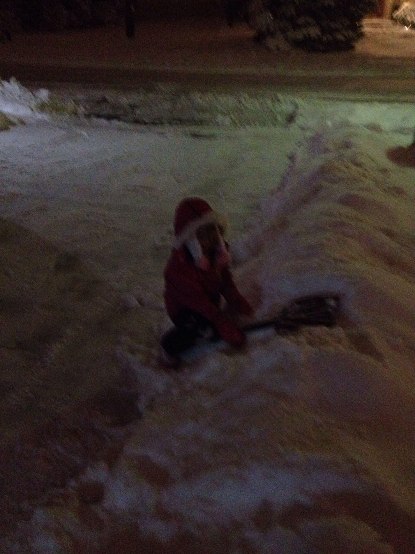 I hadn’t been out in the snow today. So daddy took me out late. It was fun.