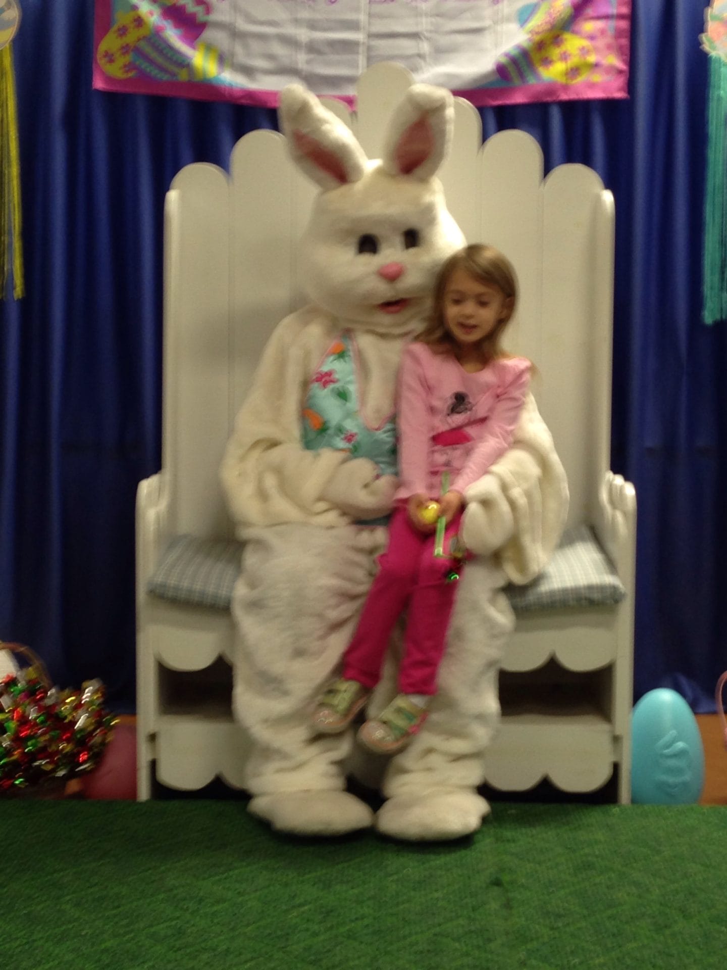 Mommy & I met my friend Alana and her family at the rec center for brunch with the Easter Bunny. We ran around & had lots of fun. I even ran into one of my friends from school.