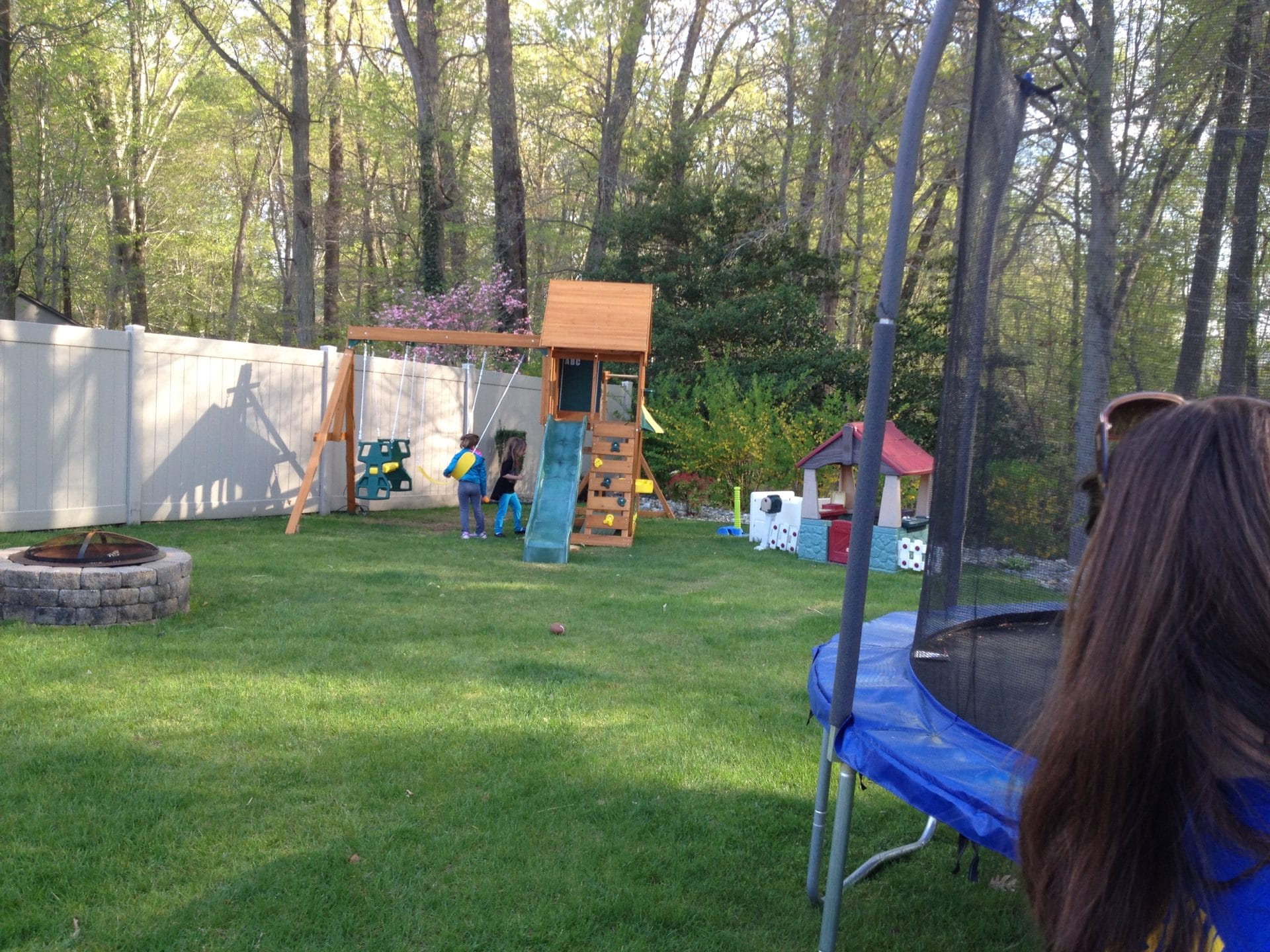 Coming home from school I saw that Alana was home. So when we parked the car I asked Dad to get my bike and we rode down. She has a new swing set and trampoline so it was fun.