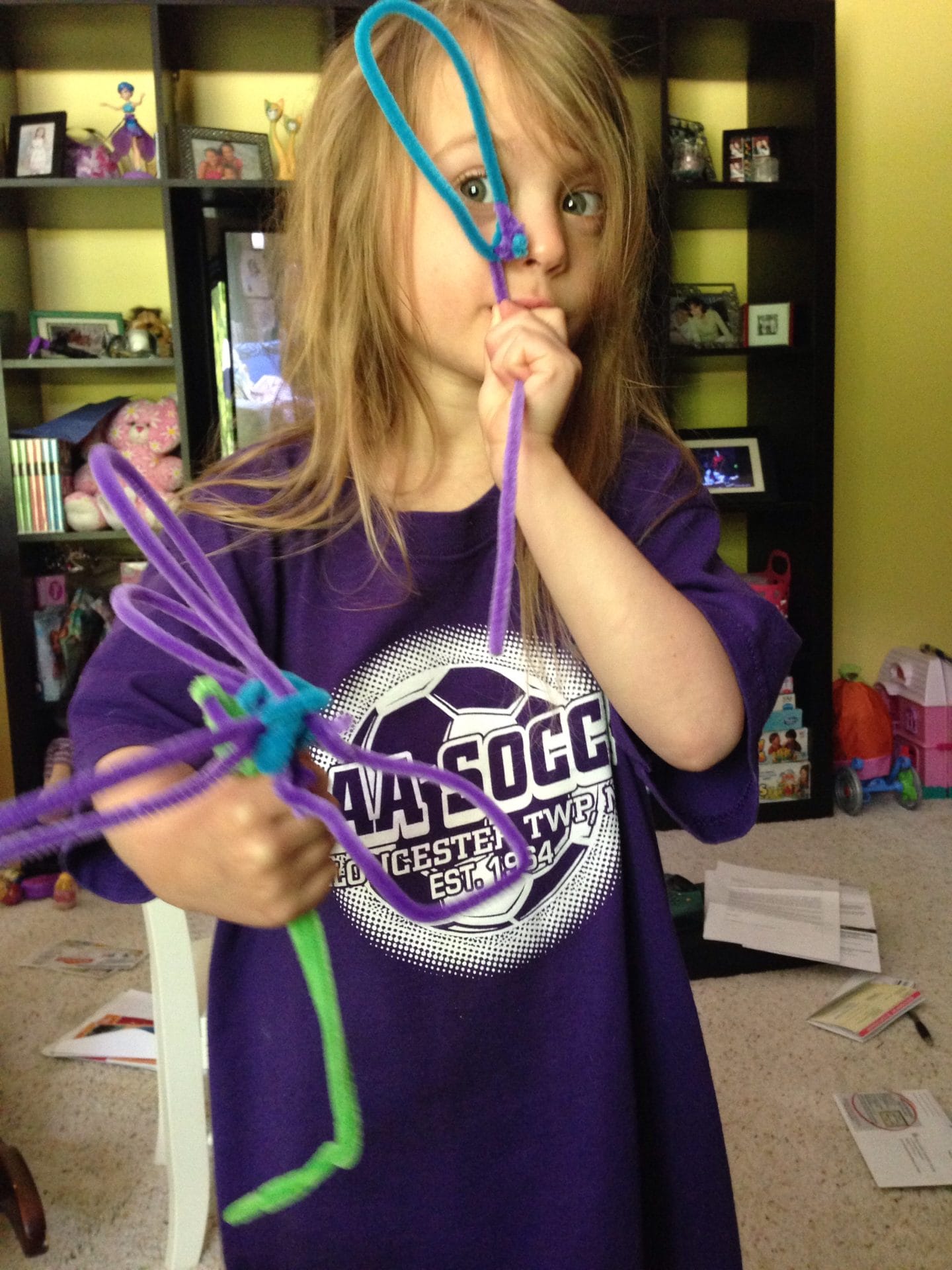 I used all of mommy’s pretty pipe cleaners to make mommy flowers and balloons.