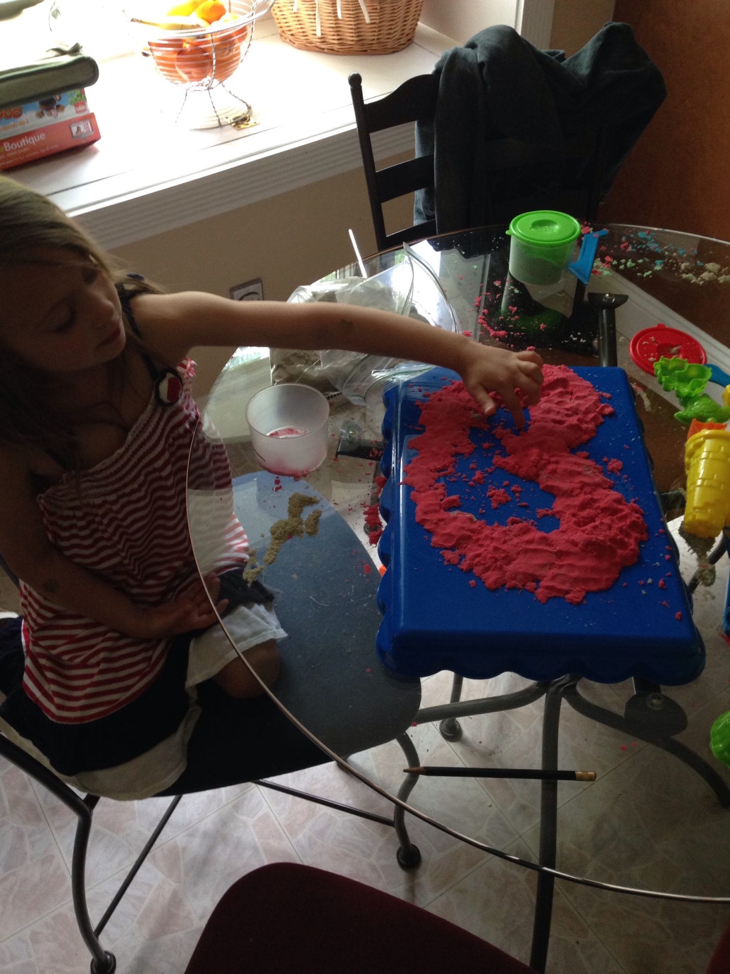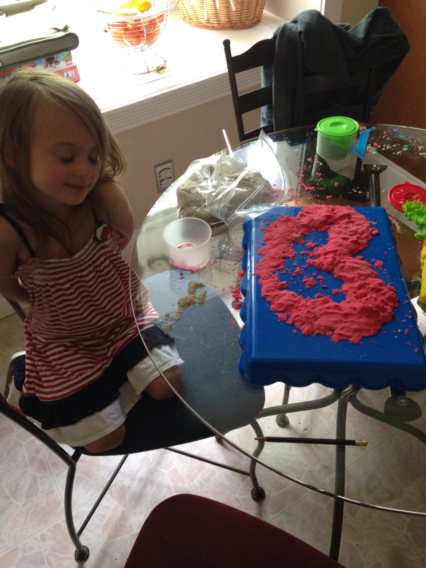 I had so much fun playing in the sand yesterday that I asked if I could play with my kinetic sand today.