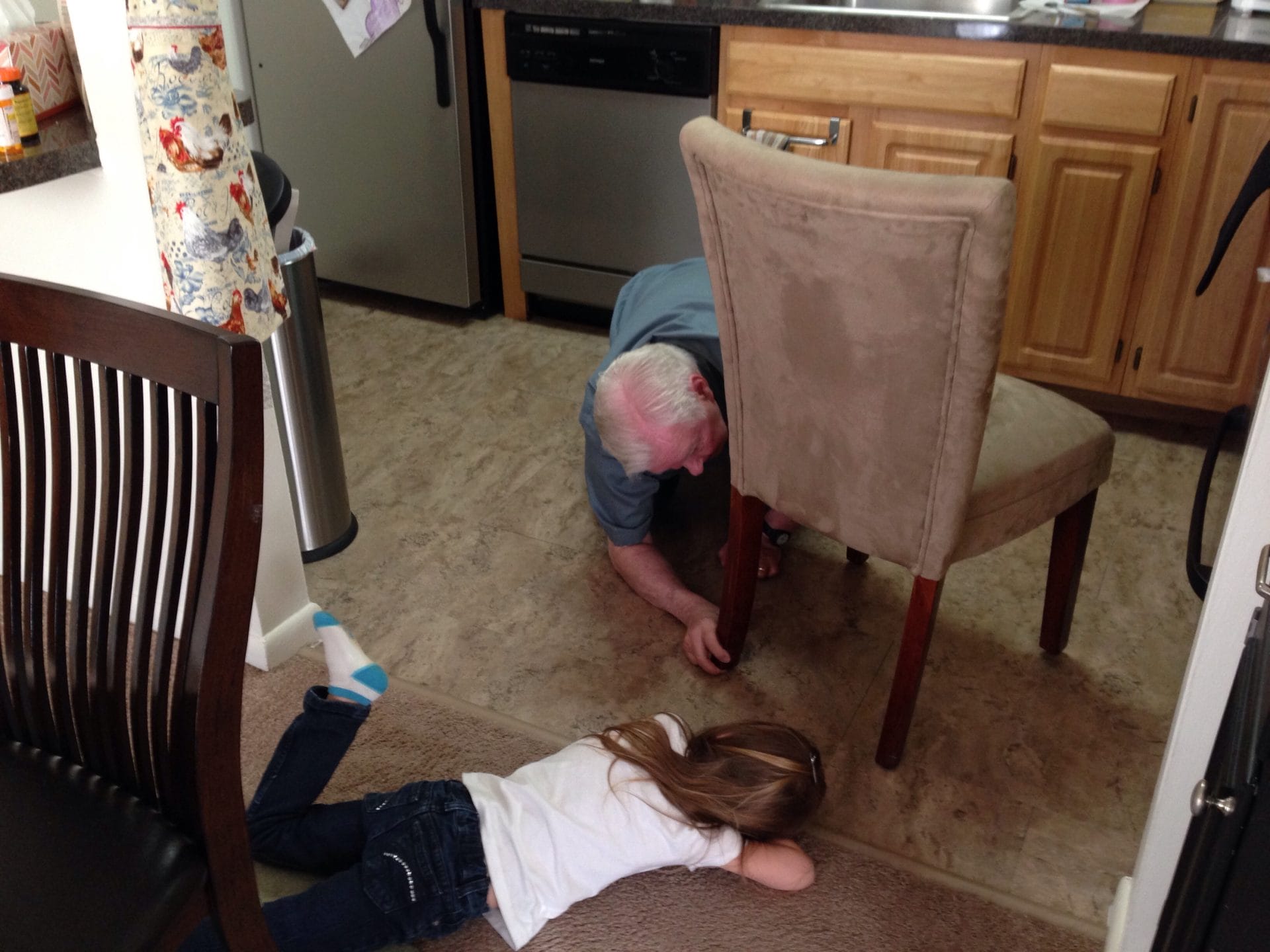 Mommy & Daddy had an event to go to tonight, so I got to hang out with Grandmom & Poppy. Which worked out for them, because they got my handy-girl help free of charge when I helped Poppy fix this chair.
