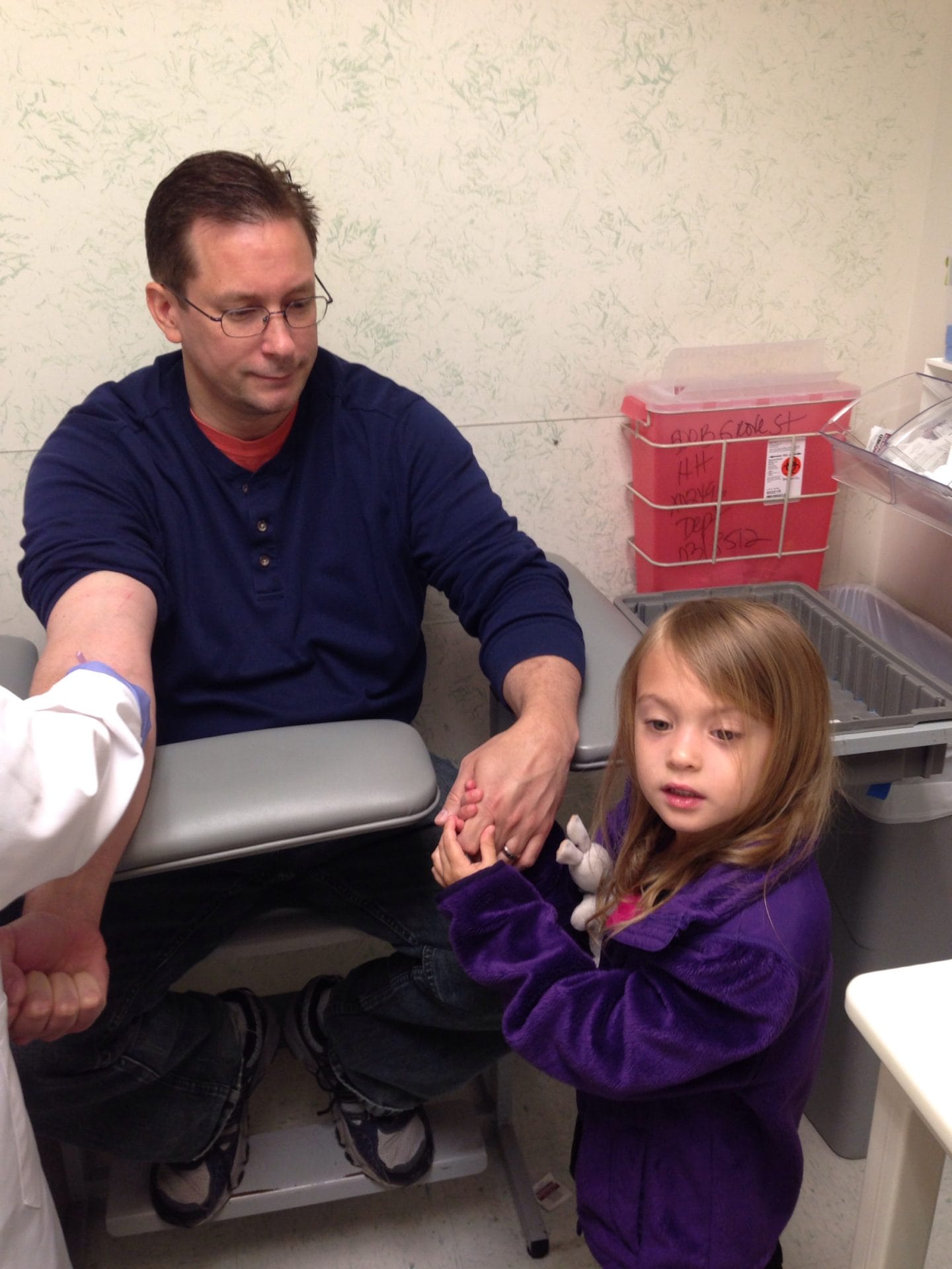 Daddy, mommy, and I all got our blood drawn today. I held mommy’s and daddy’s hands so they wouldn’t get scared.