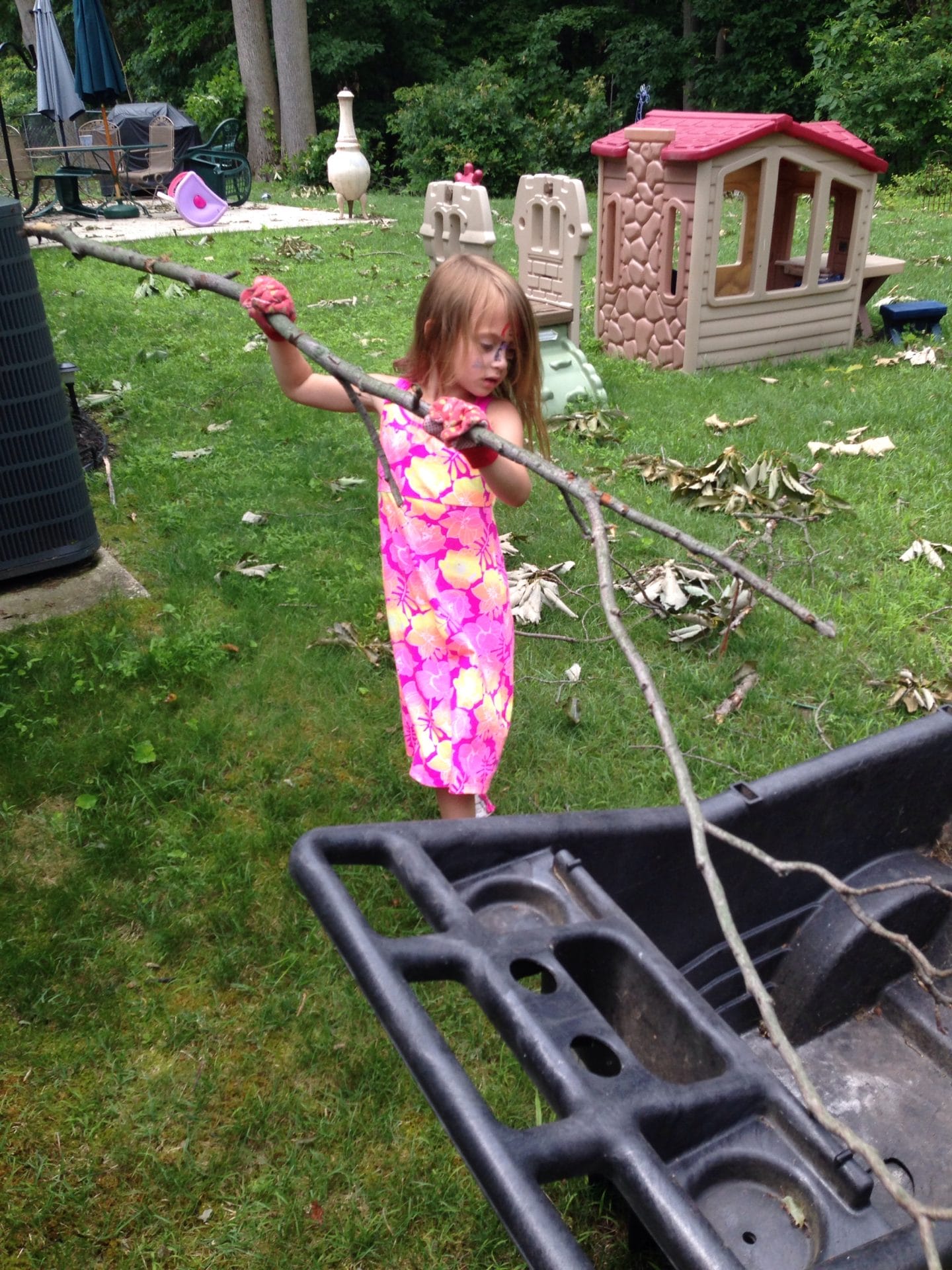 I helped mommy clean up the yard. The storm made a big mess. Luckily, I’m really strong!