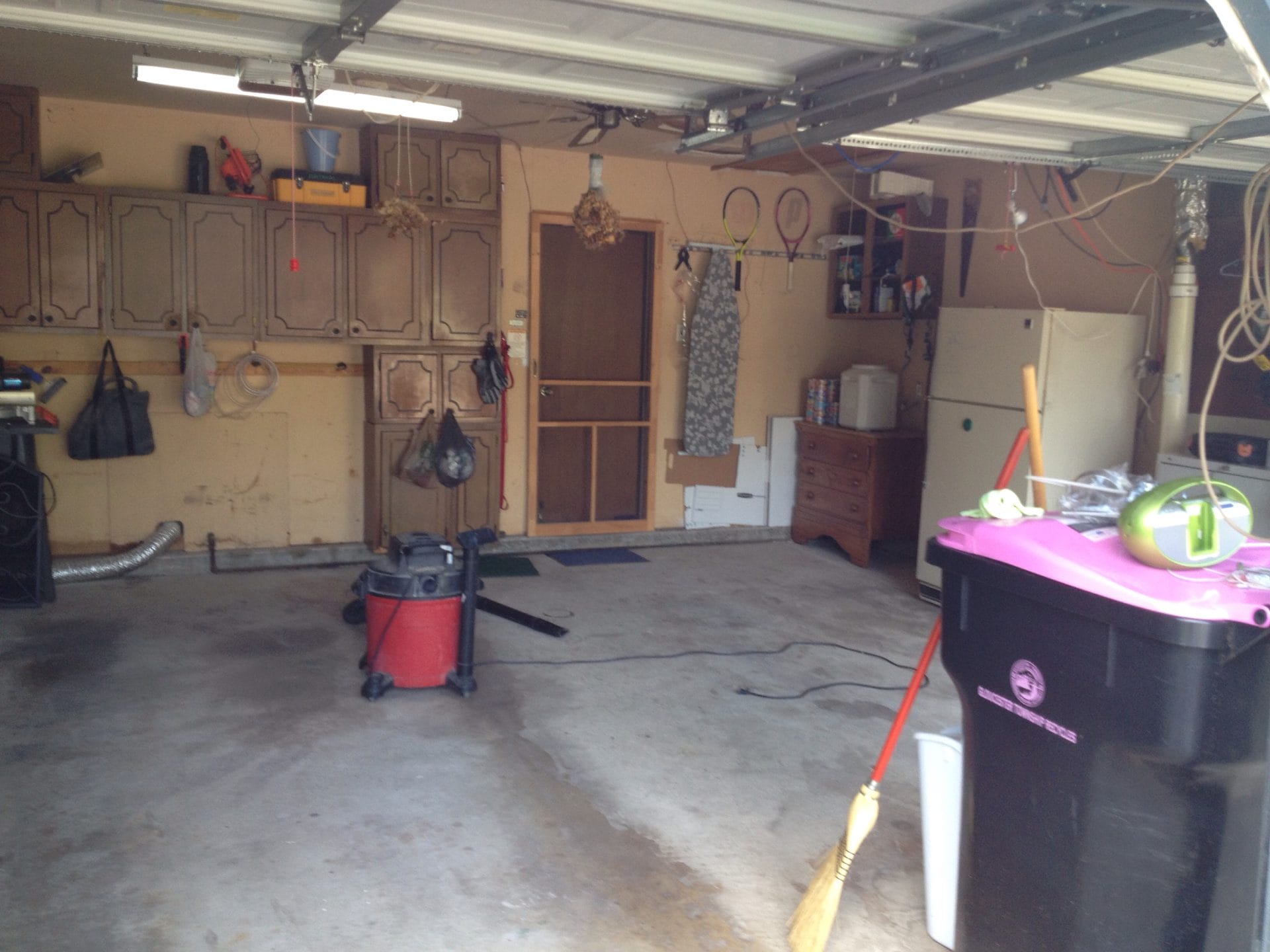 On his day off, dad decided to clean out the garage. So he set me up with my water table and pool. Then he got to work. Mommy and I helped too.