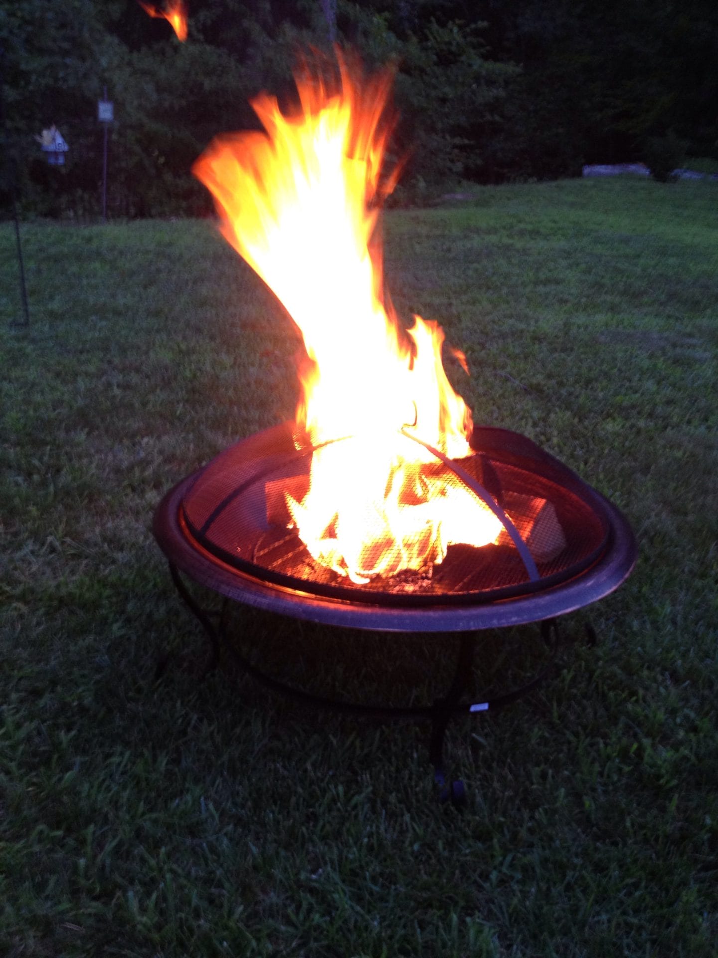 But then me & mommy went on a quest to get dad a fire pit. We finally found one. So we BBQ’d and then made a fire. Grandmom & poppy even came over for the fire. We made smores and Grandmom helped me catch lightning bugs.