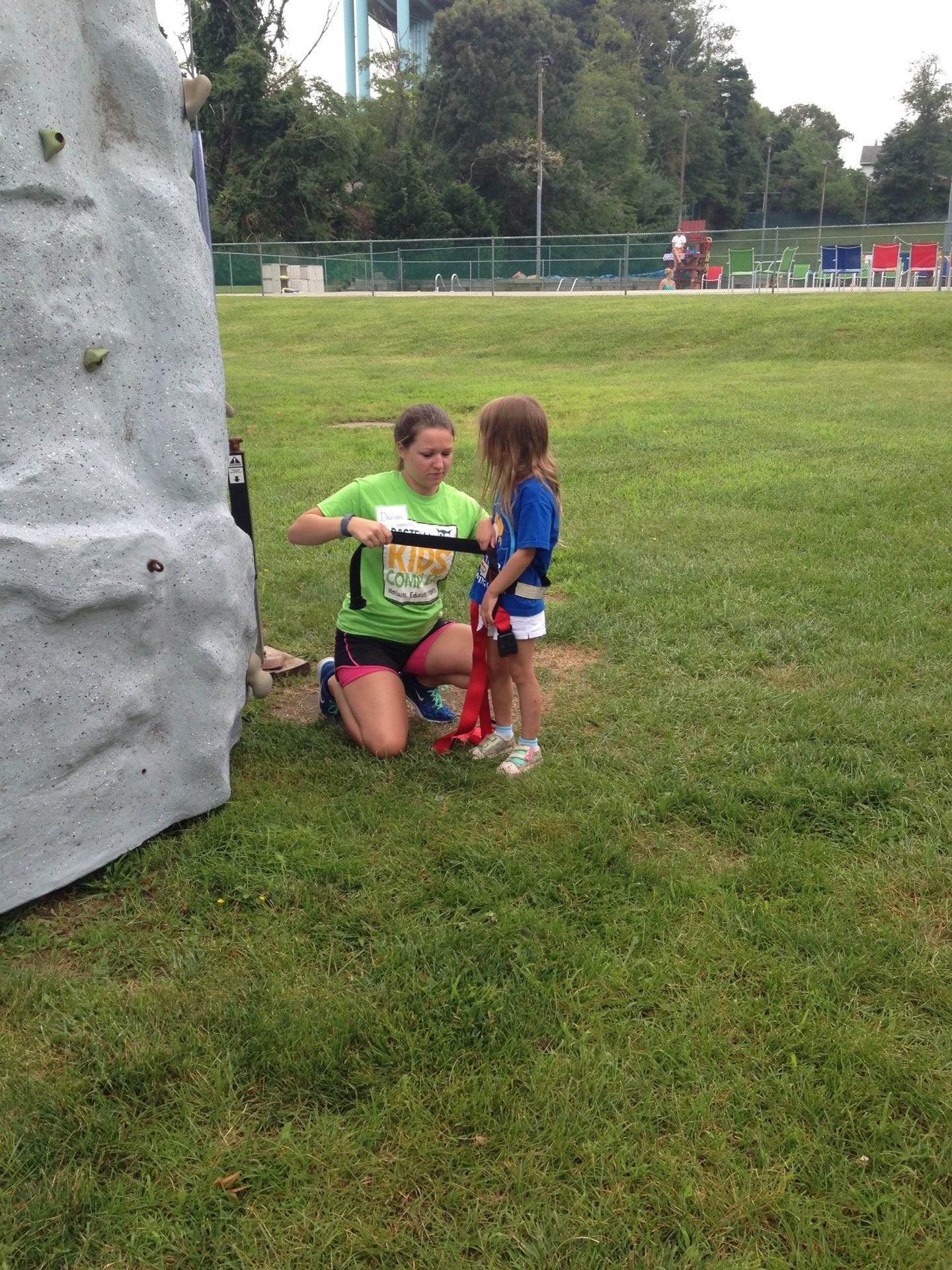 I was the first one on the rock wall. I was rarin’ to go! The harness was a little loose on me, and I didn’t get up as high as I thought I would, but I had fun!