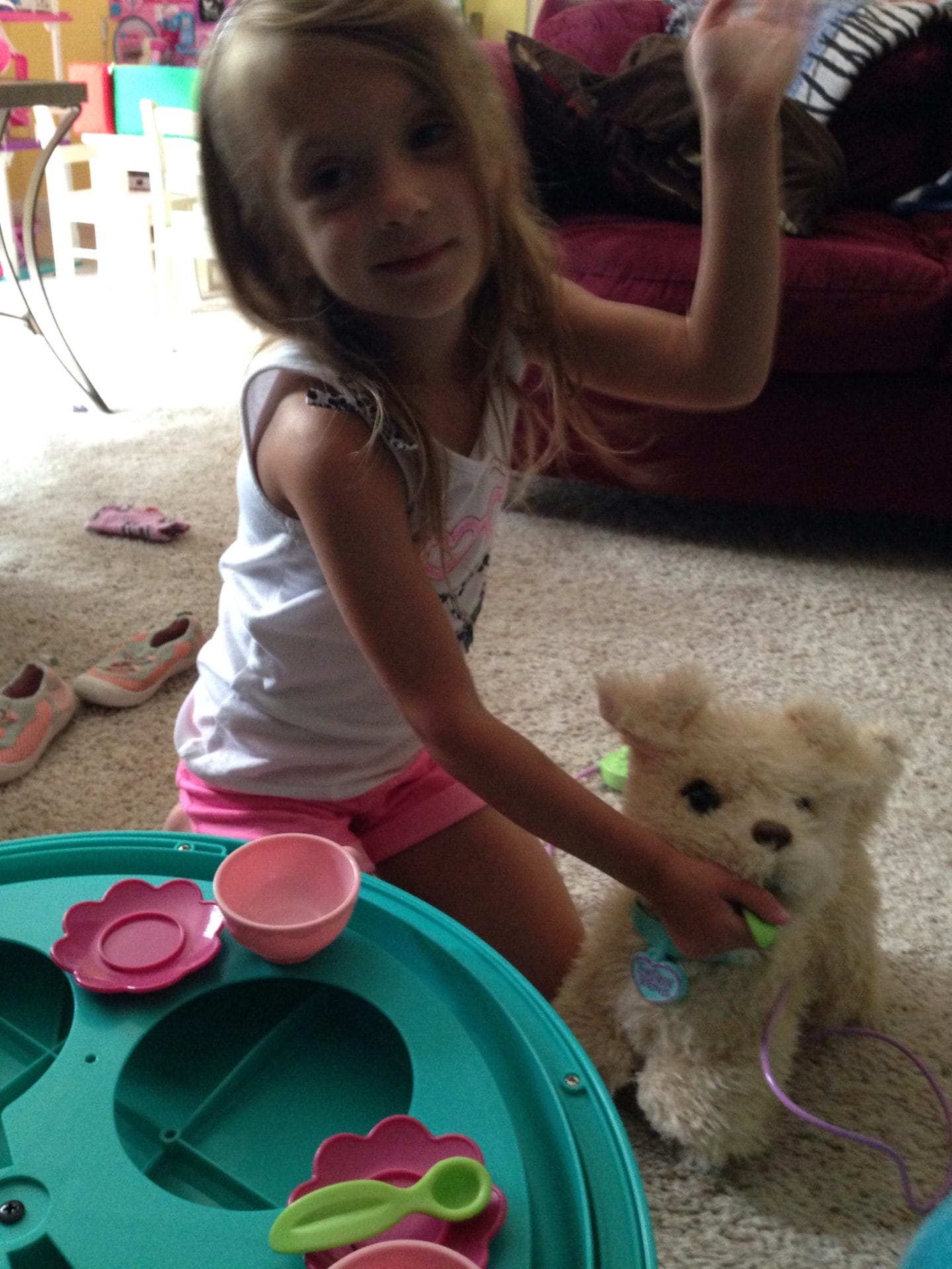 Mommy & I had a tea party on this rainy afternoon. And my dog, Biscuit, got to join in.