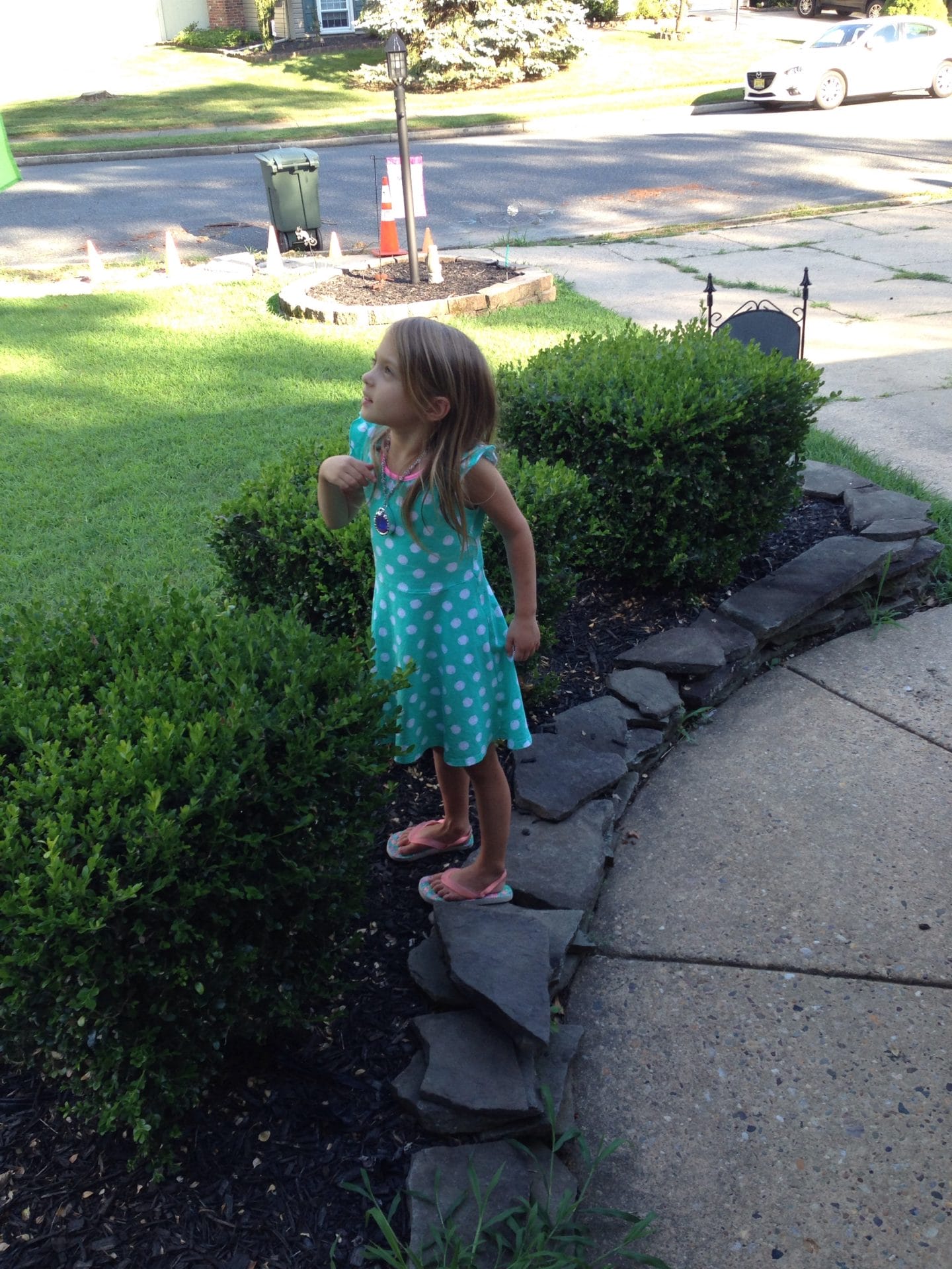 Daddy’s walking home from work, so I’m waiting for him outside.