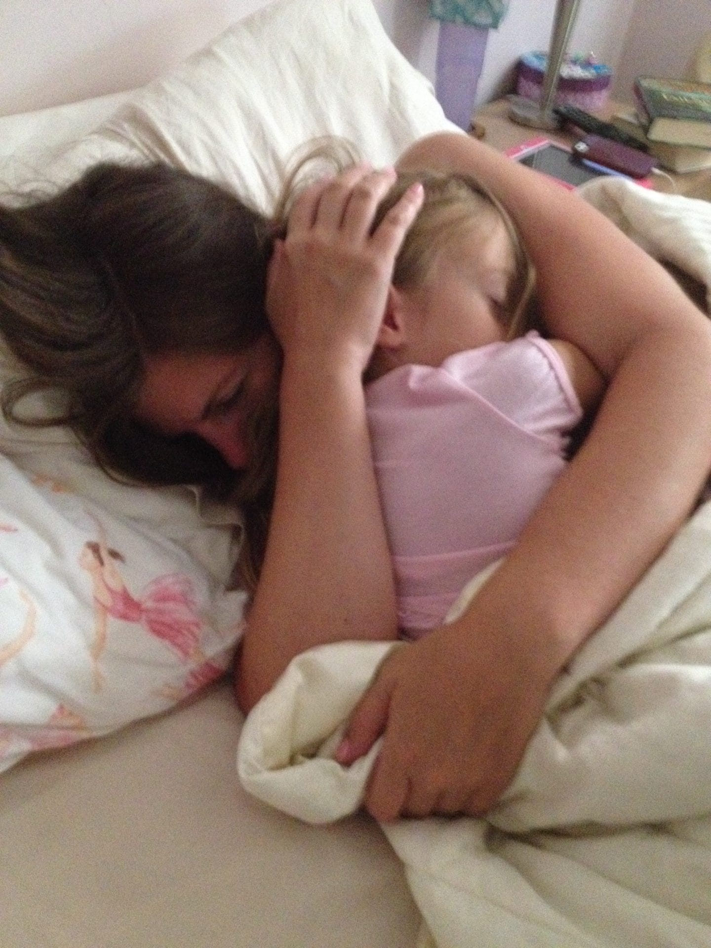 When daddy tried to wake me up this morning I didn’t want to wake up. So I rolled over and snuggled with mommy… she’ll protect me.