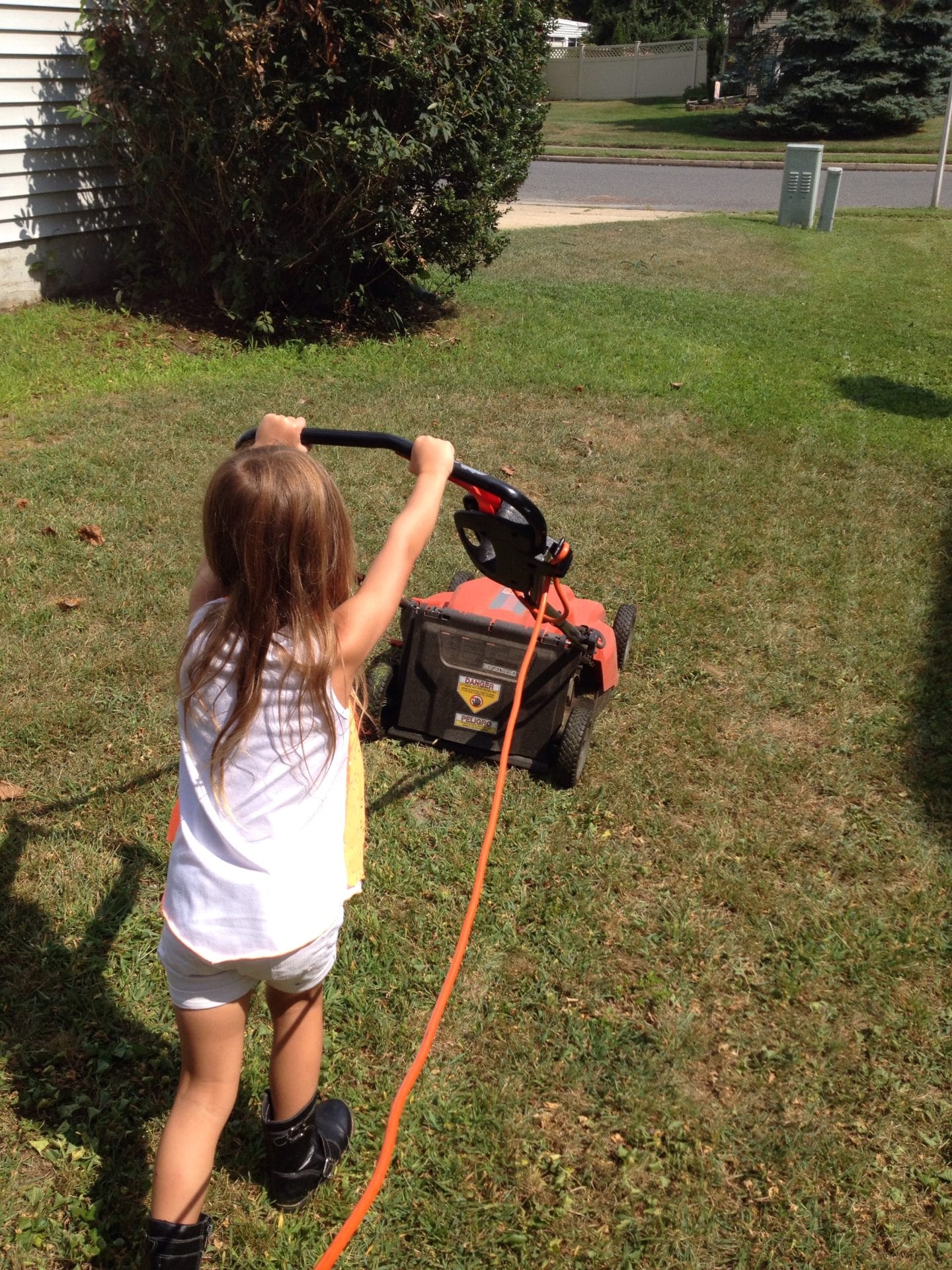 Dad is mowing the lawn and I wanted to help. So he let me. But after a few seconds I decided it was too tough and no fun. So I said I’d let him finish.