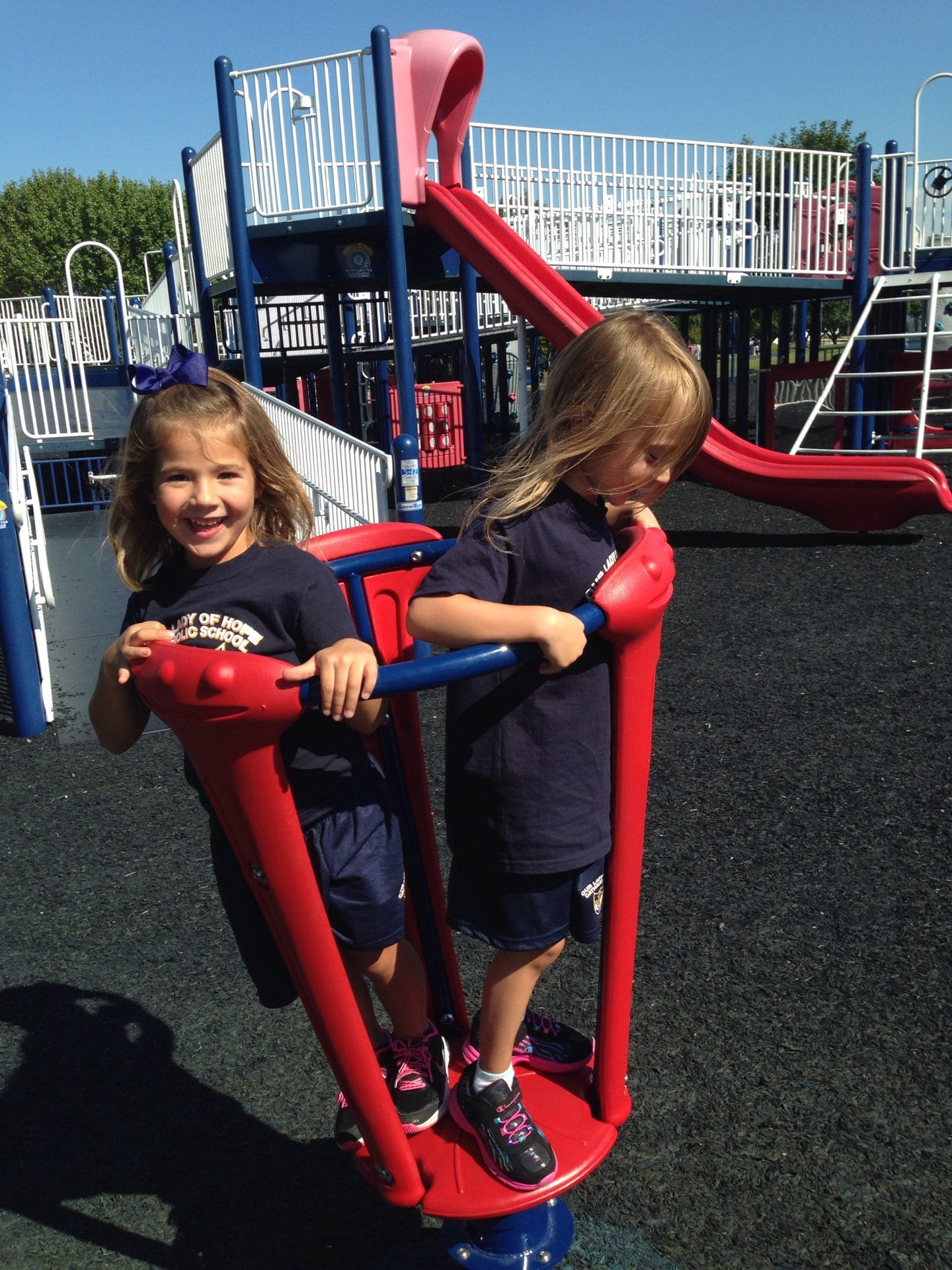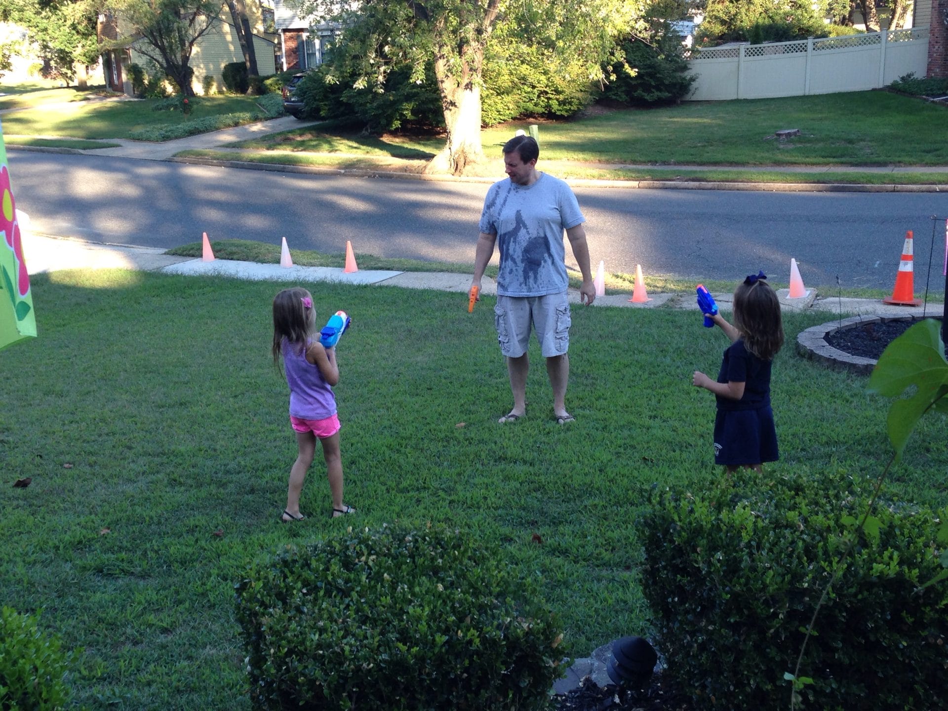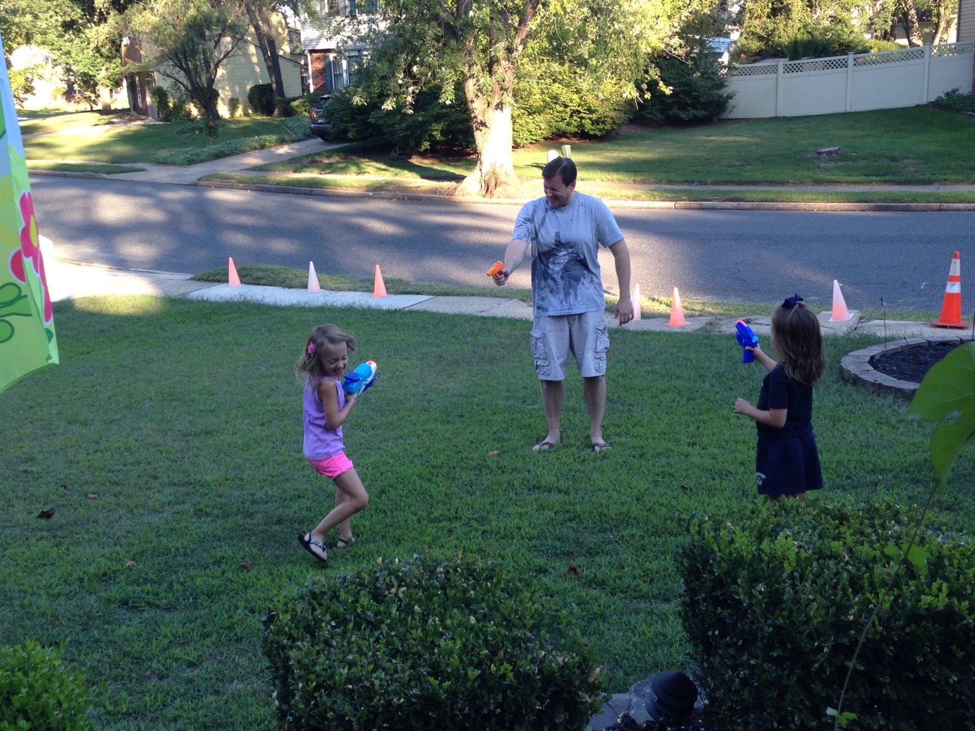 Mommy picked me & my friend up from school. We went to the park, then to my house, where we played, and then had a water battle.