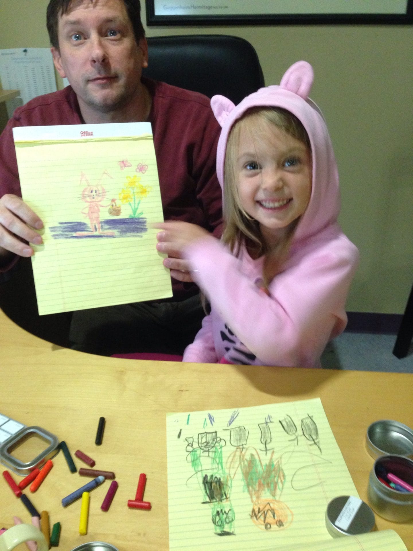 I challenged daddy to a contest to draw the scariest picture. I drew a scary picture, but dad drew a pumpkin bunny. I was not impressed.