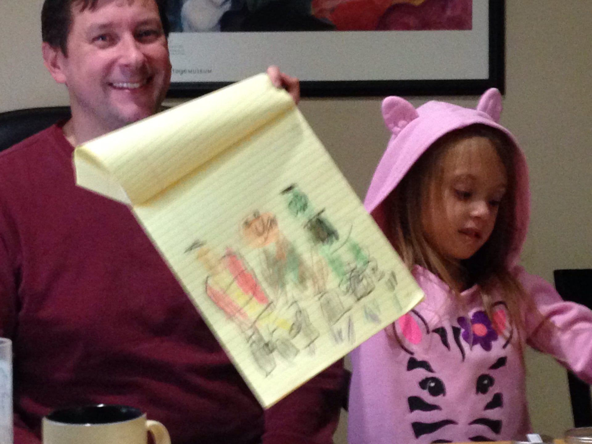 I'm drawingI'm writing and drawing pictures. But daddy keeps peeking before I'm ready to show him.…