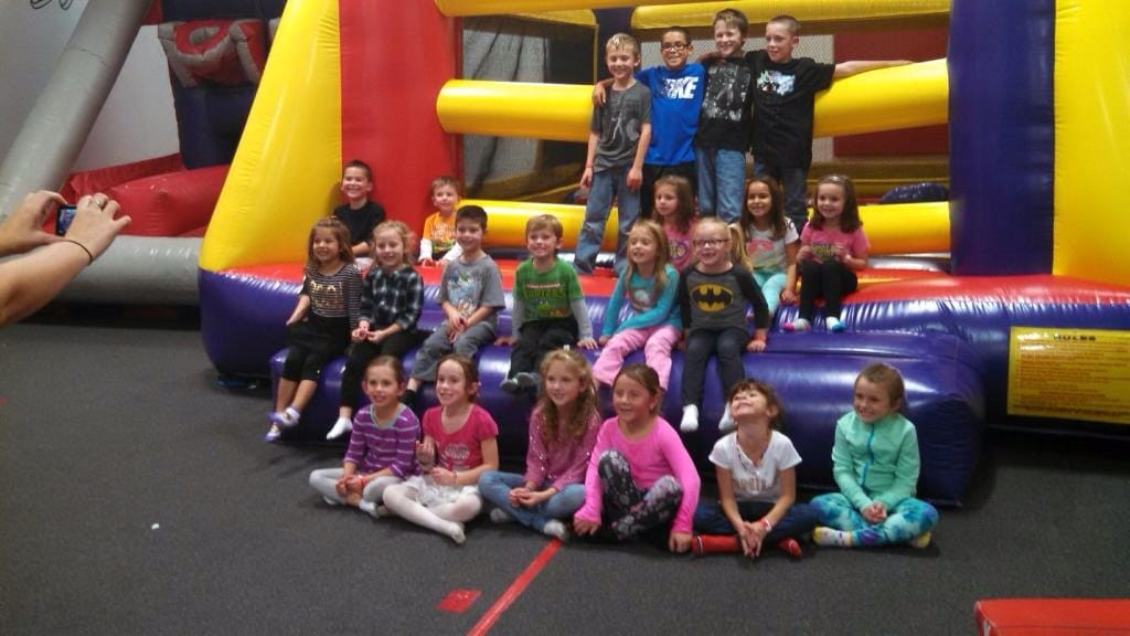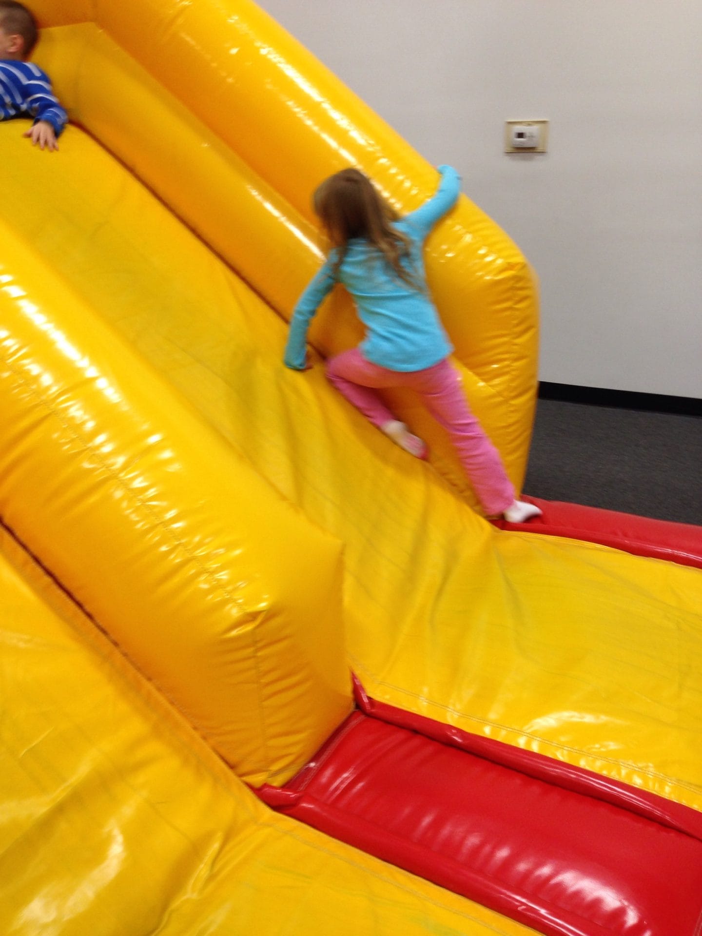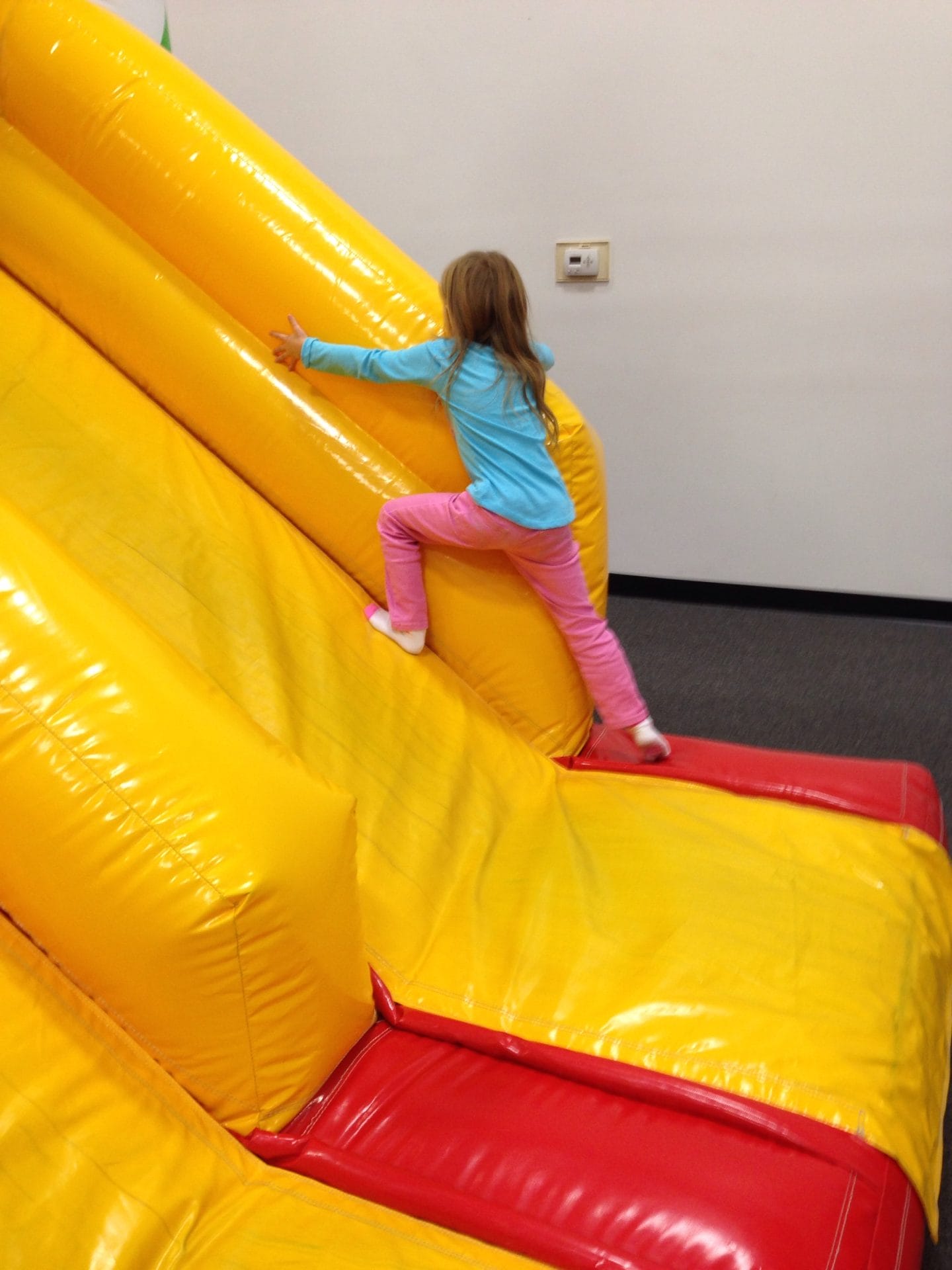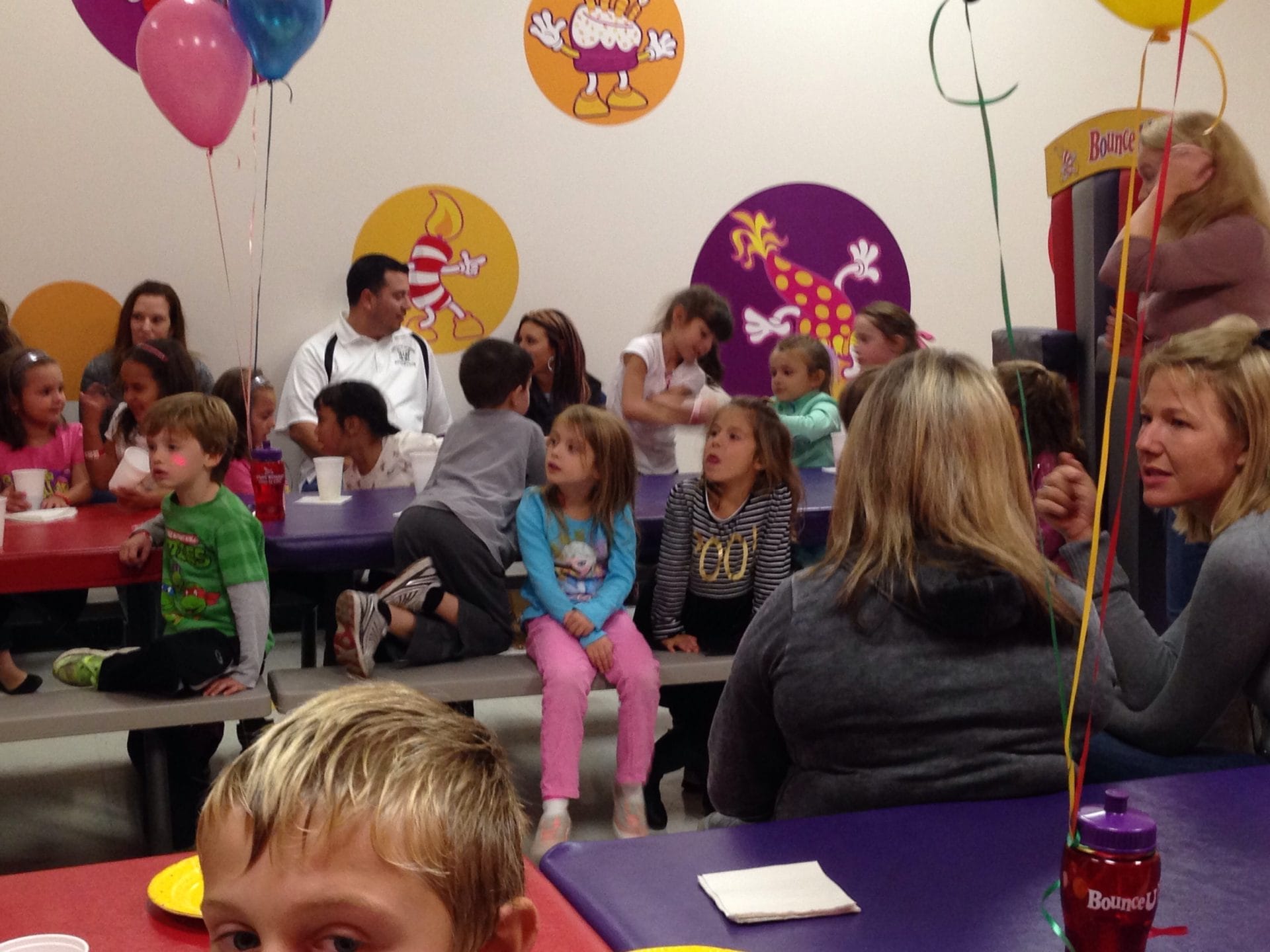 After soccer I had to get changed quickly for Caroline’s birthday party. I love Bounce U – it’s so much fun!