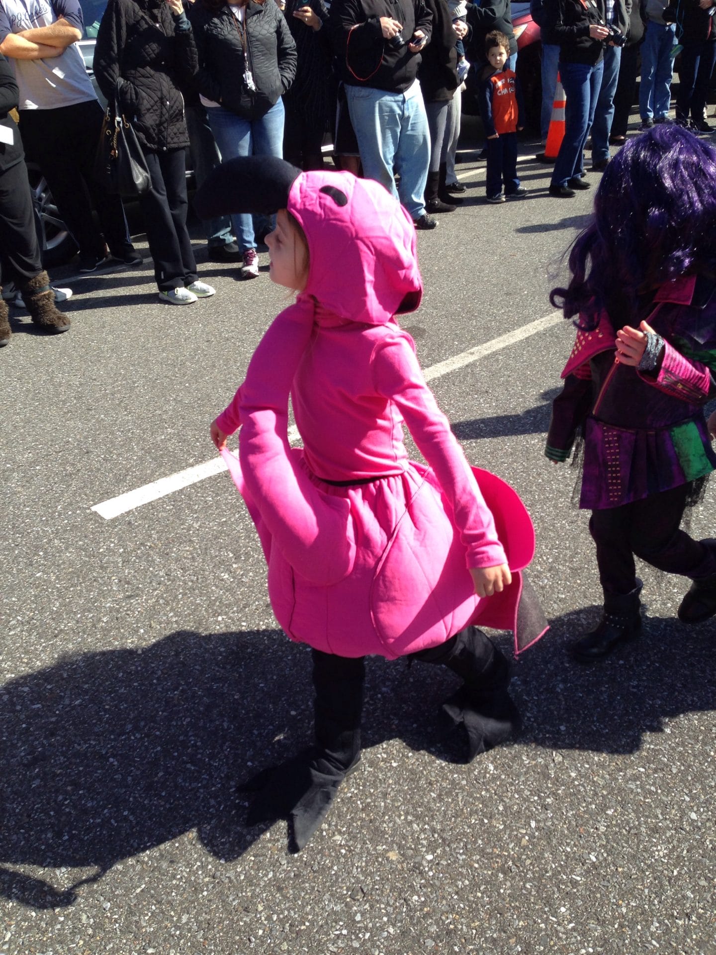 I was a big hit at my school’s Halloween party. All the big kids were shouting “look at the flamingo!” I even flapped my feathers for them.