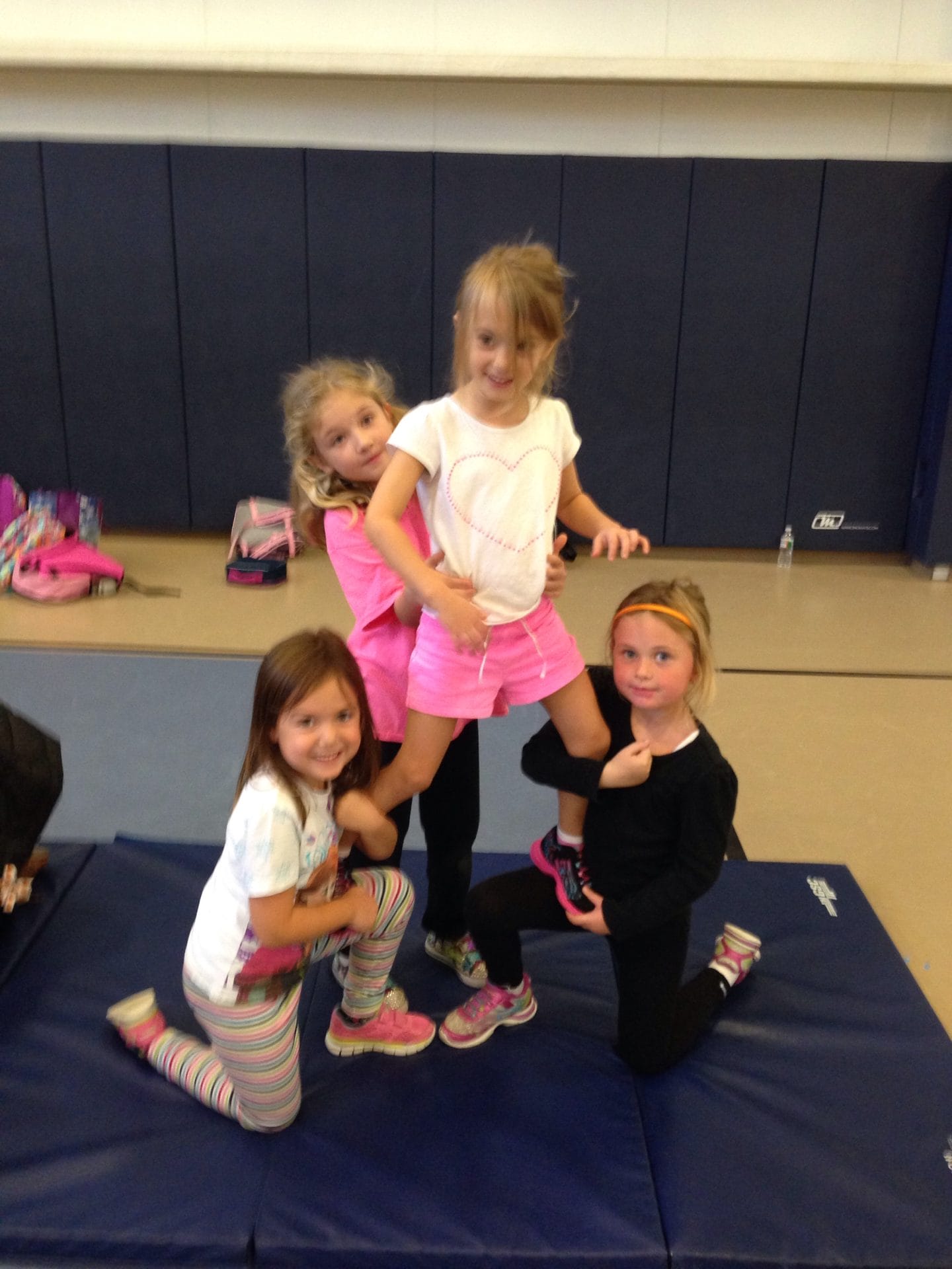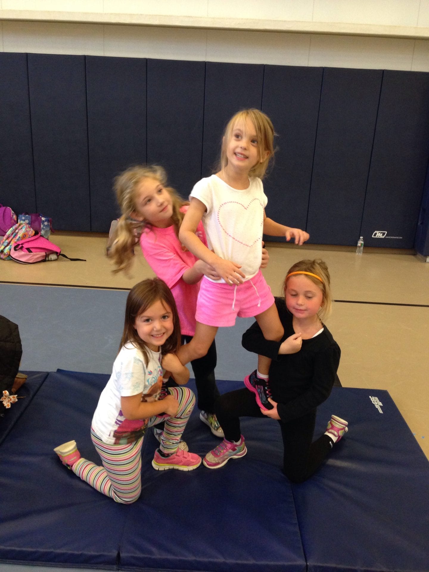 We had our second cheerleading practice today, and it looks like I’m going to be a “flyer.” Turns out I like standing on people!