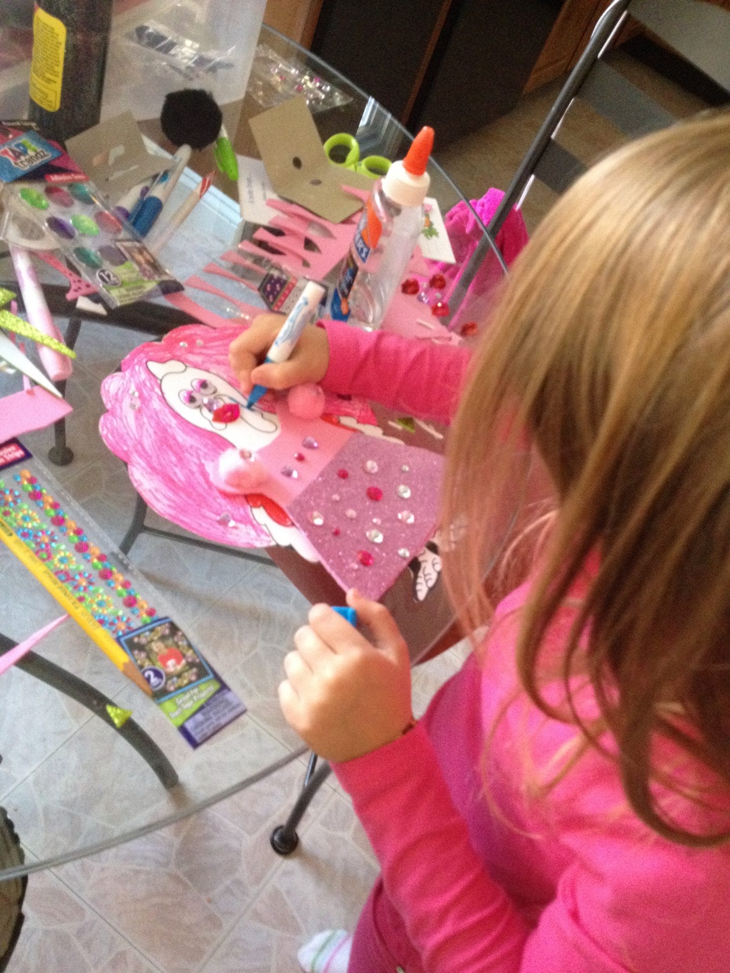I’ve had a homework assignment to decorate (and conceal) my turkey picture. But I’m just getting to it today. Dad was assisting me. He even took me to the store to buy lots of fun stuff for my project.IMG_9584 IMG_9585