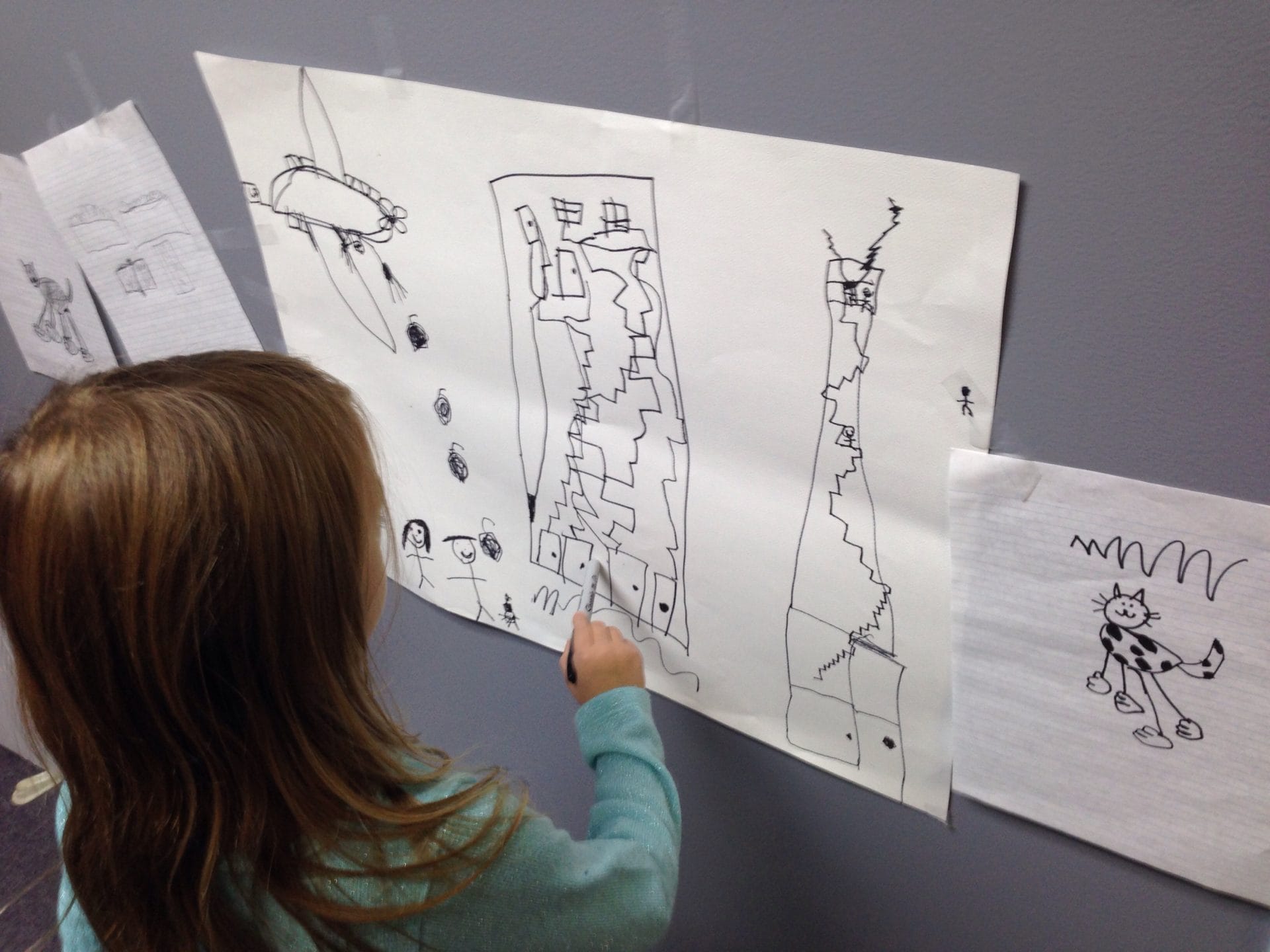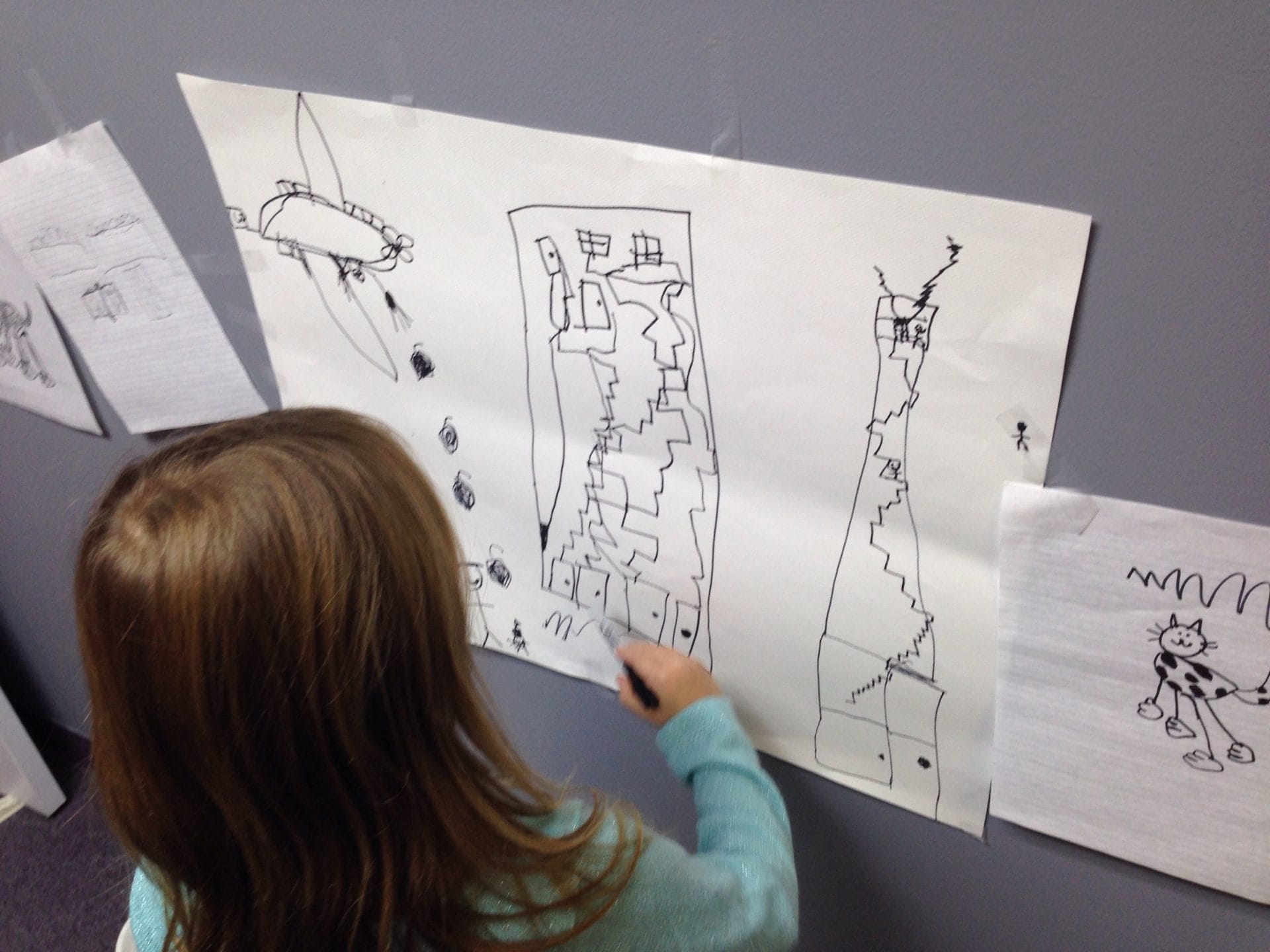 See, this is an airplane dropping bombs on people, and this building has stairways and escalators. And this is an evil tower.