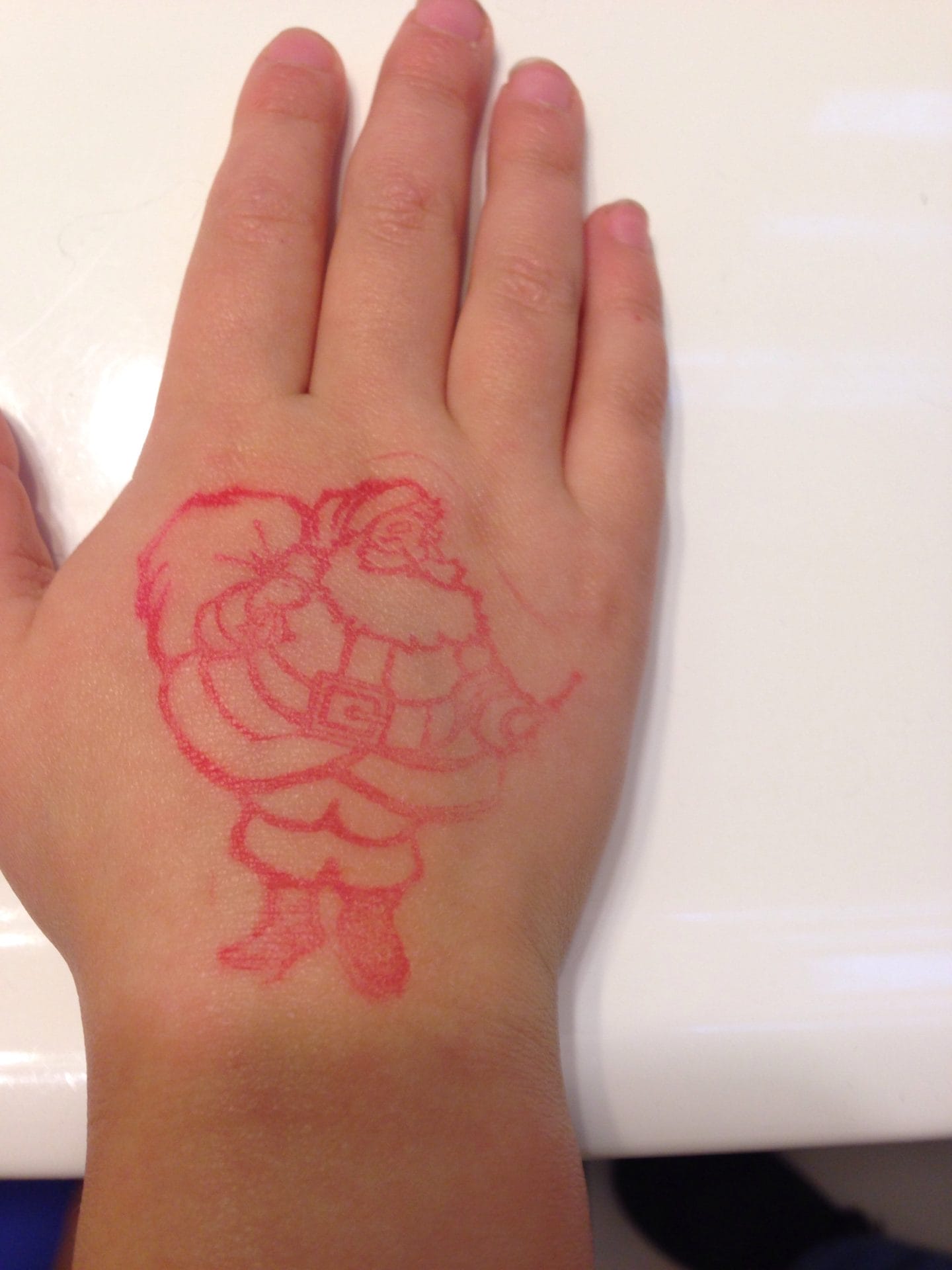 Santa stamp by elevins | Dec 2, 2015 | 4yrs and Beyond I got this stamp in school for being good. I wanted a picture before I had to wash it off. Related Posts SantaSee... I was not impressed with Santa. Nobody's fault - I just didn't want to… Santa cookiesGotta leave snacks for the big guy! Santa 2014Just with Santa. I asked for a puppy.