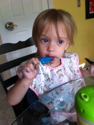 MessyYummy Popsicle after dinner. Mommy says my hands & face are all blue now.