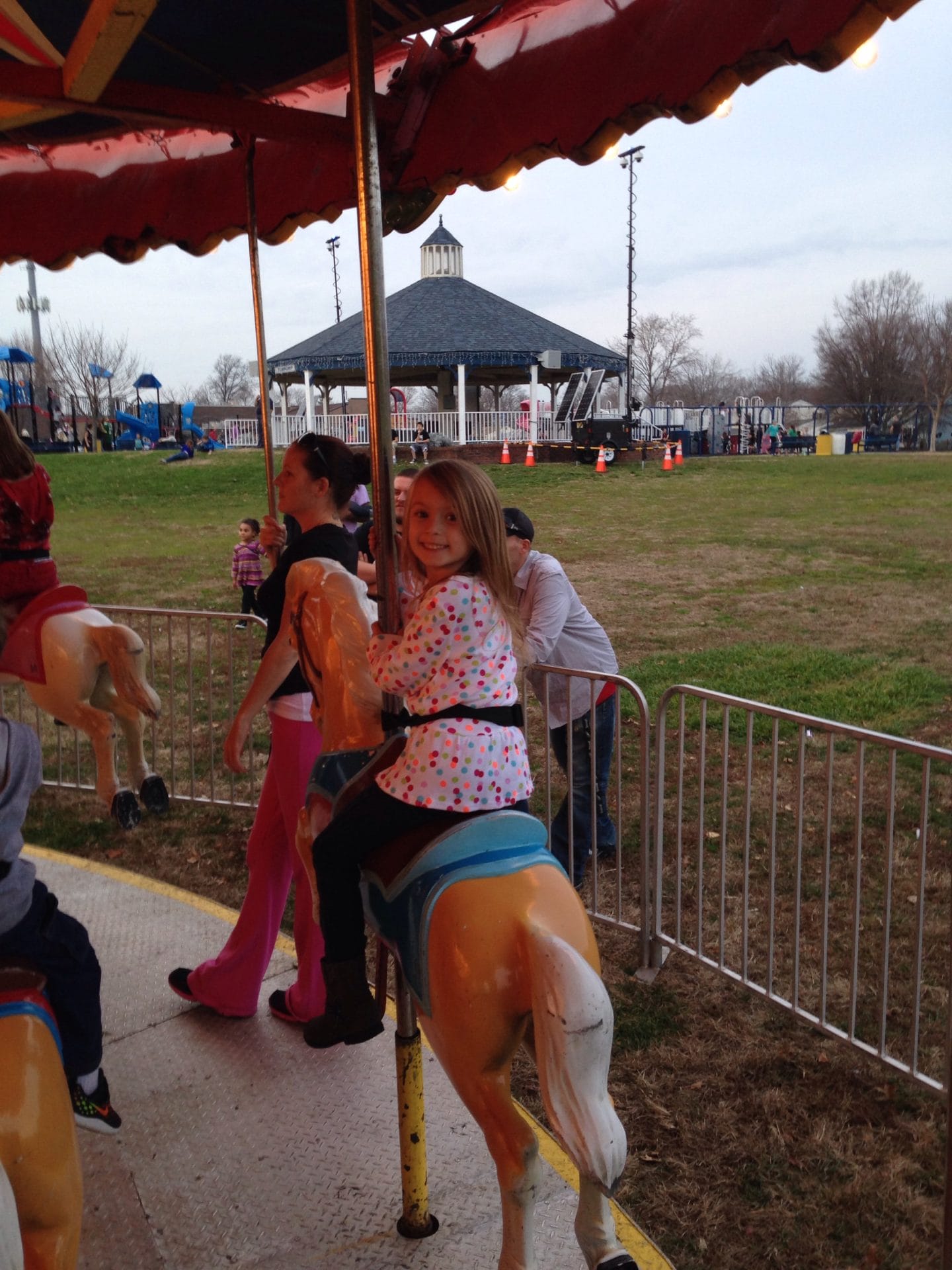 Fun times at the tree lighting tonight. First we had a carousel ride. And the 68 degree weather allowed for play time on the playground.