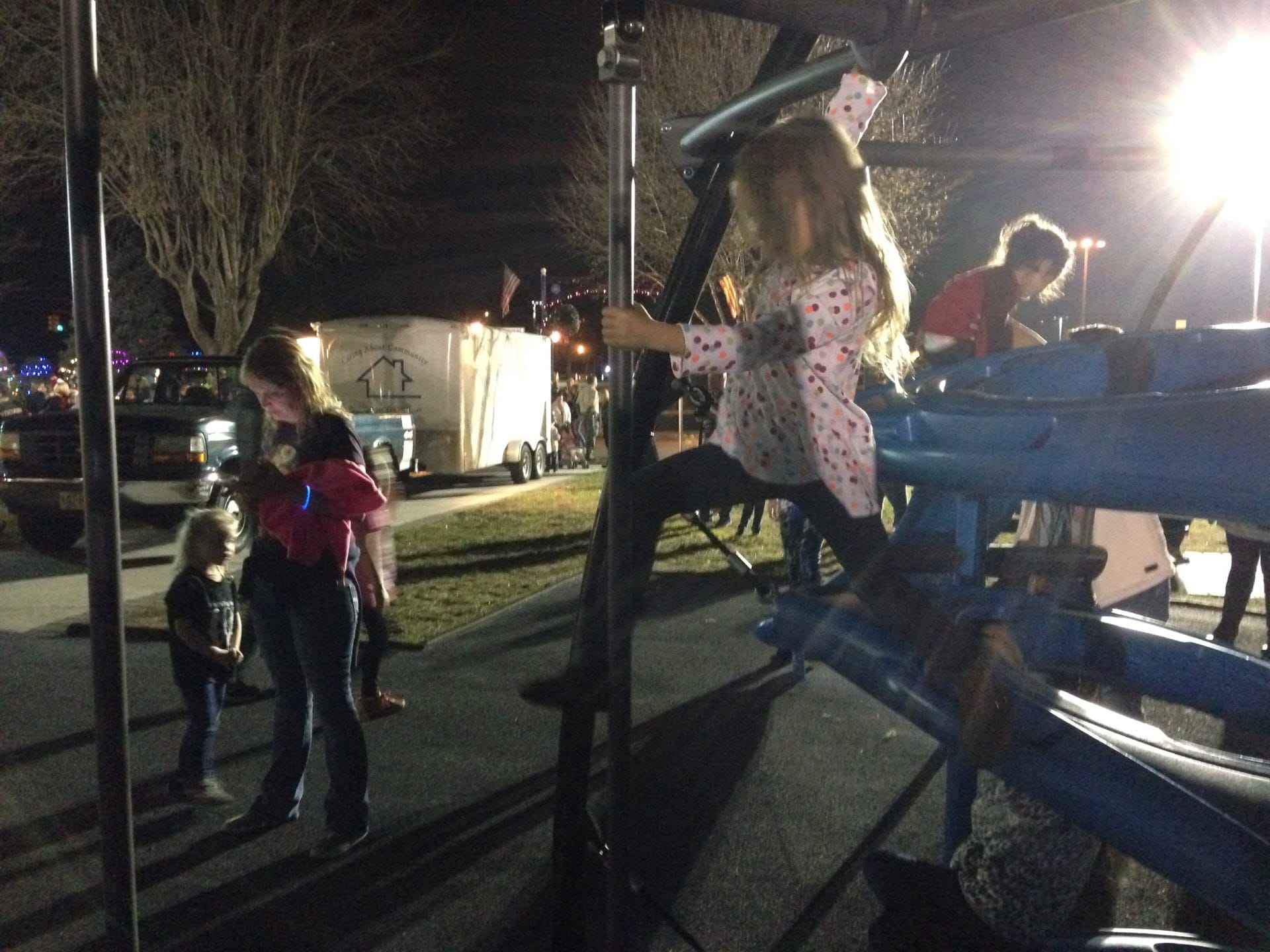 Fun times at the tree lighting tonight. First we had a carousel ride. And the 68 degree weather allowed for play time on the playground.