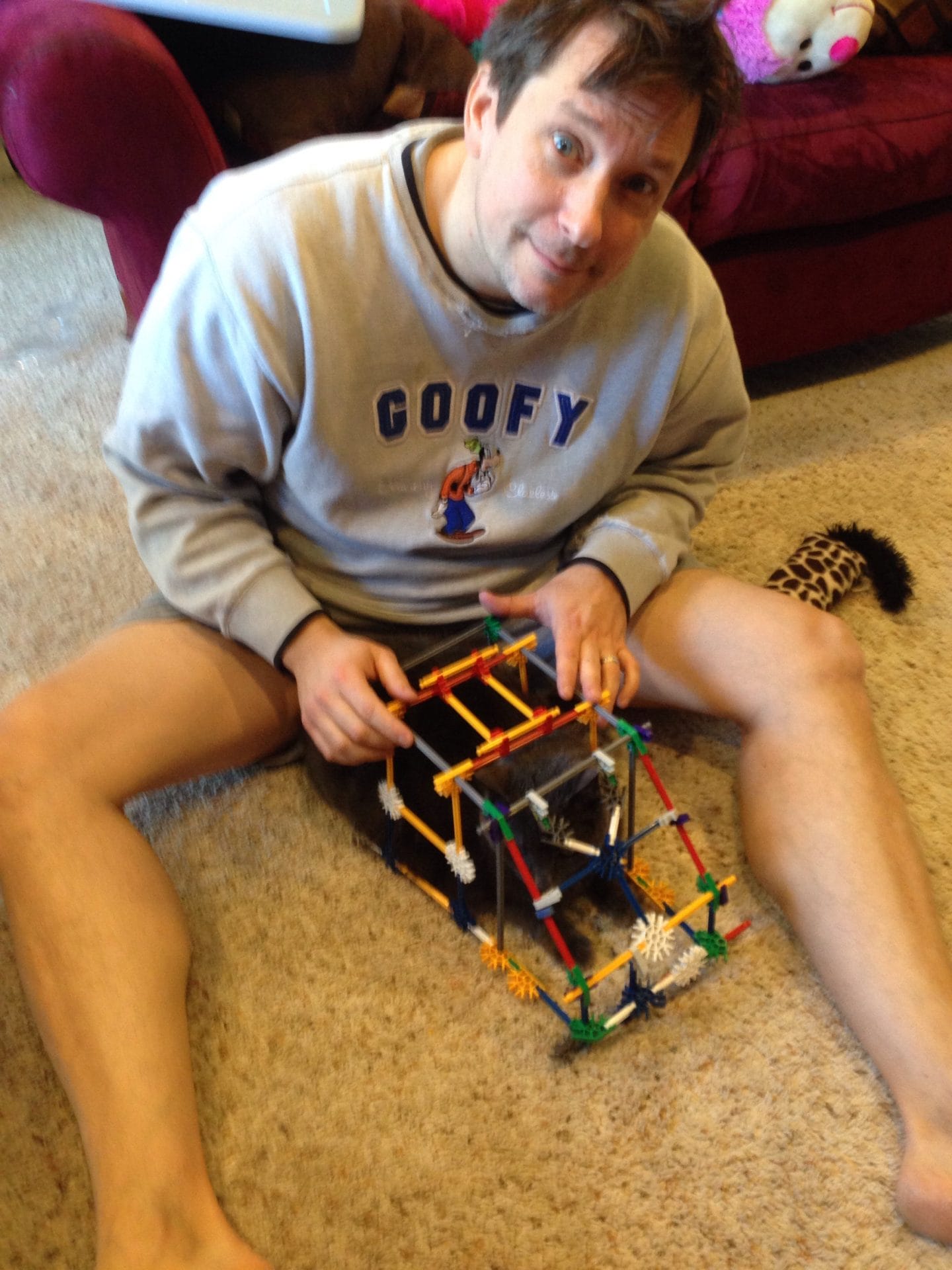 Daddy & I made a cat cage out of my K’nex. We made Charlie test it out, but I don’t think he’s too happy.