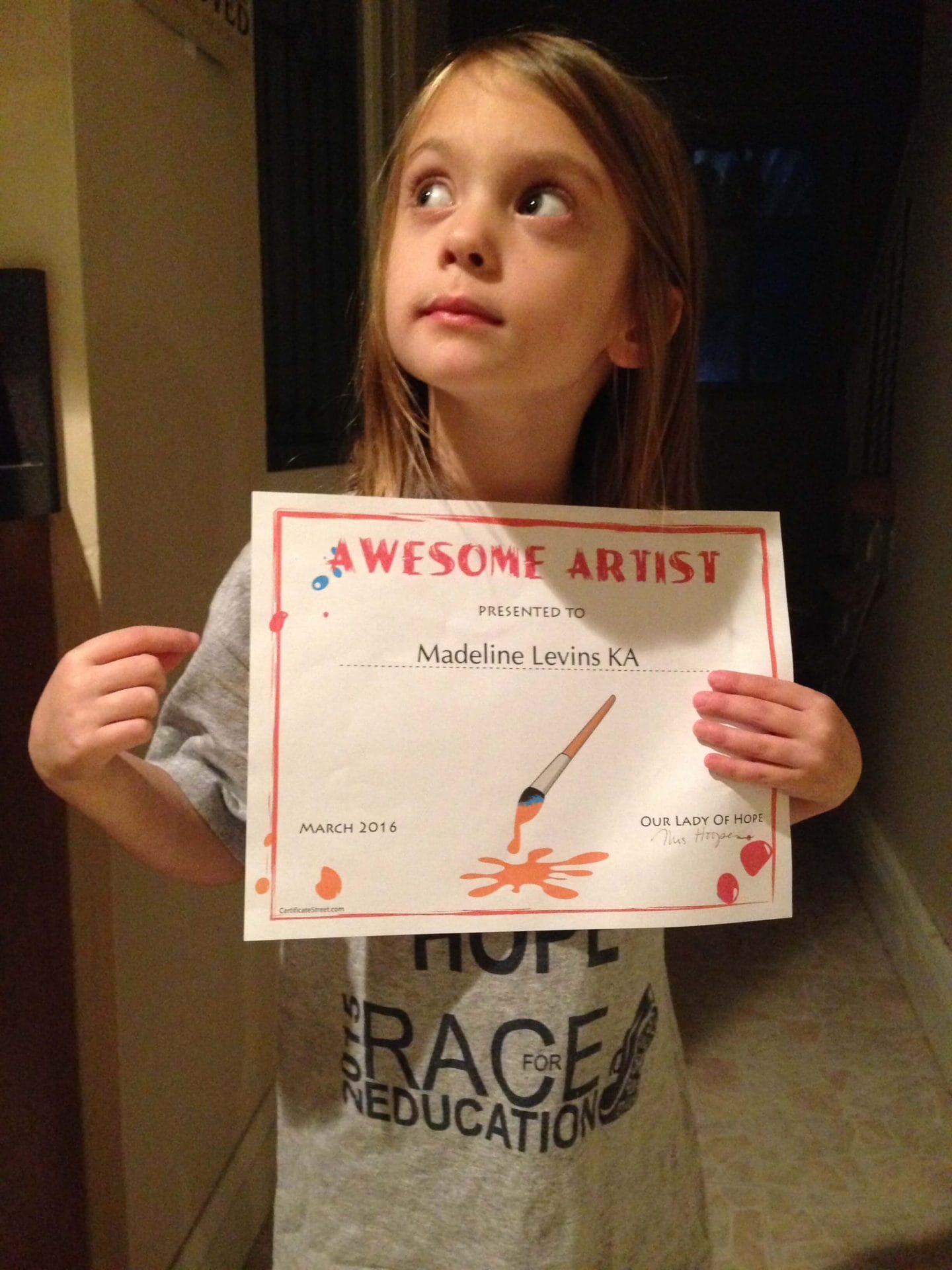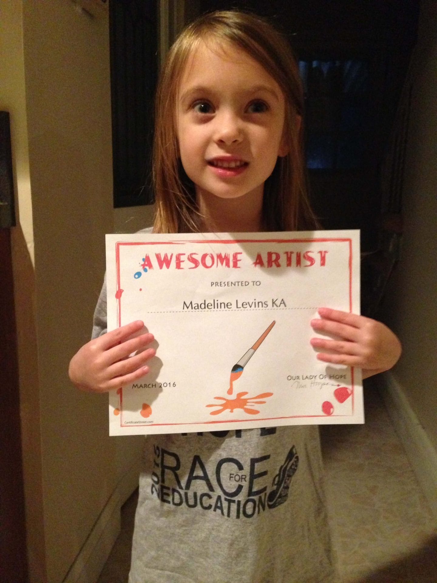I was named artist of the month at my school for the month of March! I got to go up & be on the TV in front of my whole school. Mommy & daddy are very excited and proud!