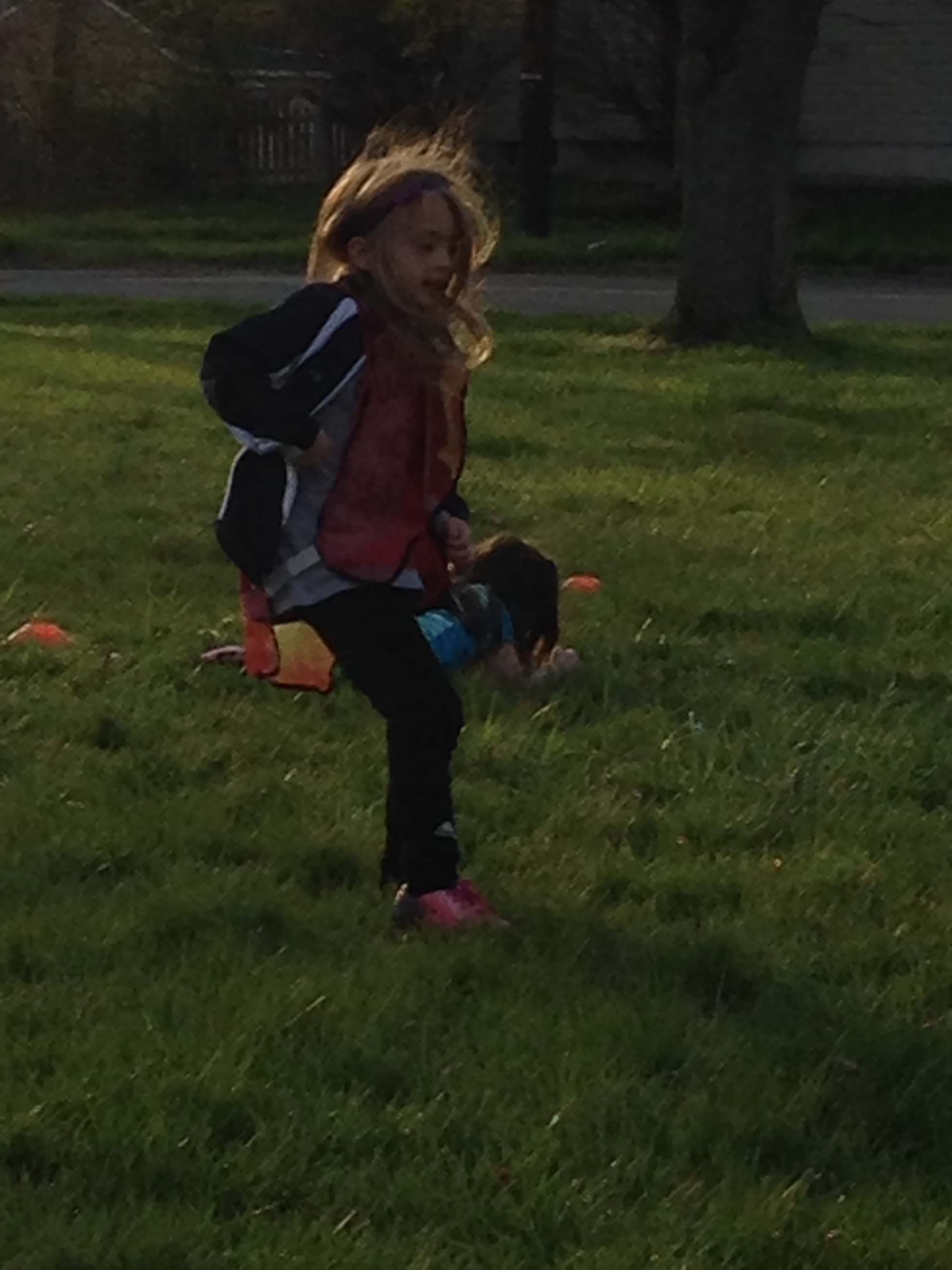 The weather has been poopy – we haven’t had a game yet, and practice keeps getting cancelled. But not tonight! We finally had nice weather for practice.