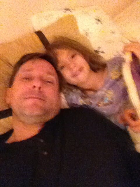 Daddy came home with pizza. Now he’s reading to me.