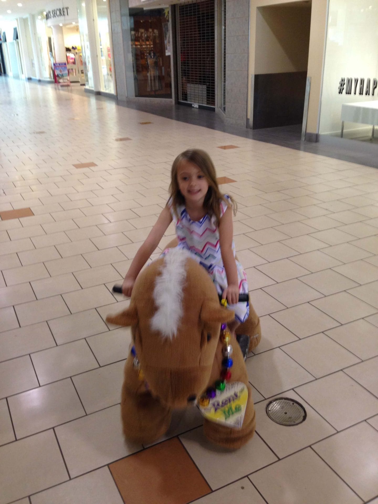 I’ve been wanting to ride one of these things at the mall for so long. Mommy let me do it today as a reward for being so brave when I got my blood drawn.