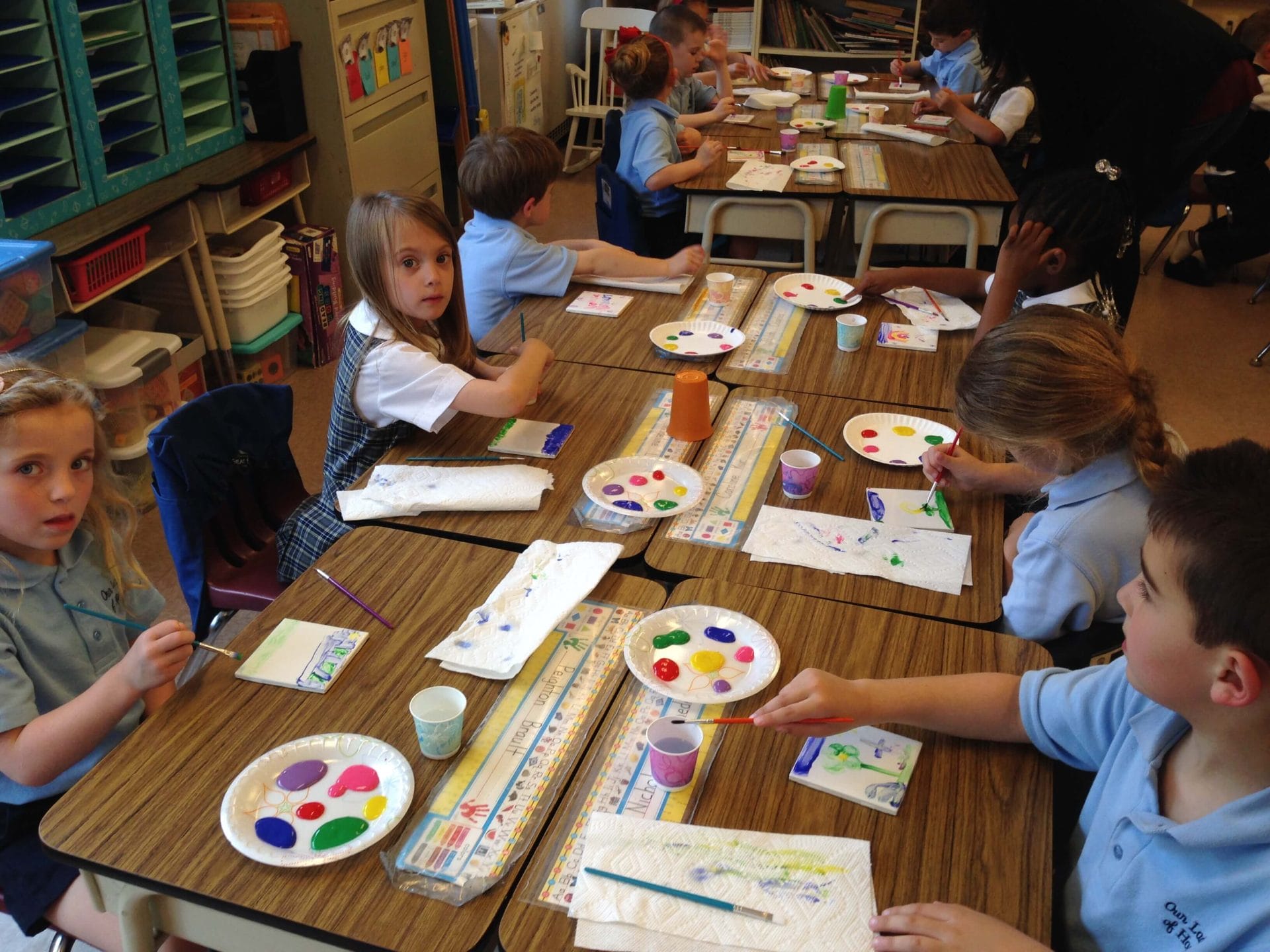 Mommy & her room mom partner came in today to make a special Mother’s Day gift for our moms. We painted on tiles for them – but mommy wasn’t allowed to look at mine because it’s a surprise.