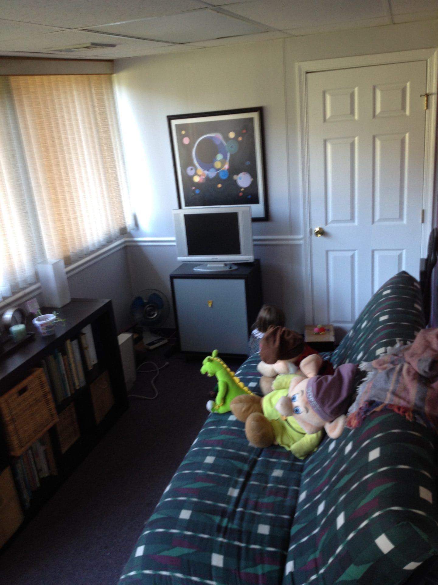 I’m at the office while mommy catches up with work. But I can’t bother Daddy…. so I’m sharing my iPad viewing with Ms. B. We’re friends.IMG_1230