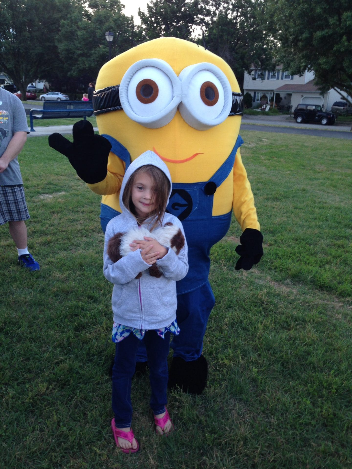 Tonight our park was showing “Minions.” I had fun meeting the minion & hanging out before the movie. But once the movie started people were too loud, and a kid stole our popcorn & knocked over our chair. So we went home & watched it on Netflix from the comfort of our cozy bed.