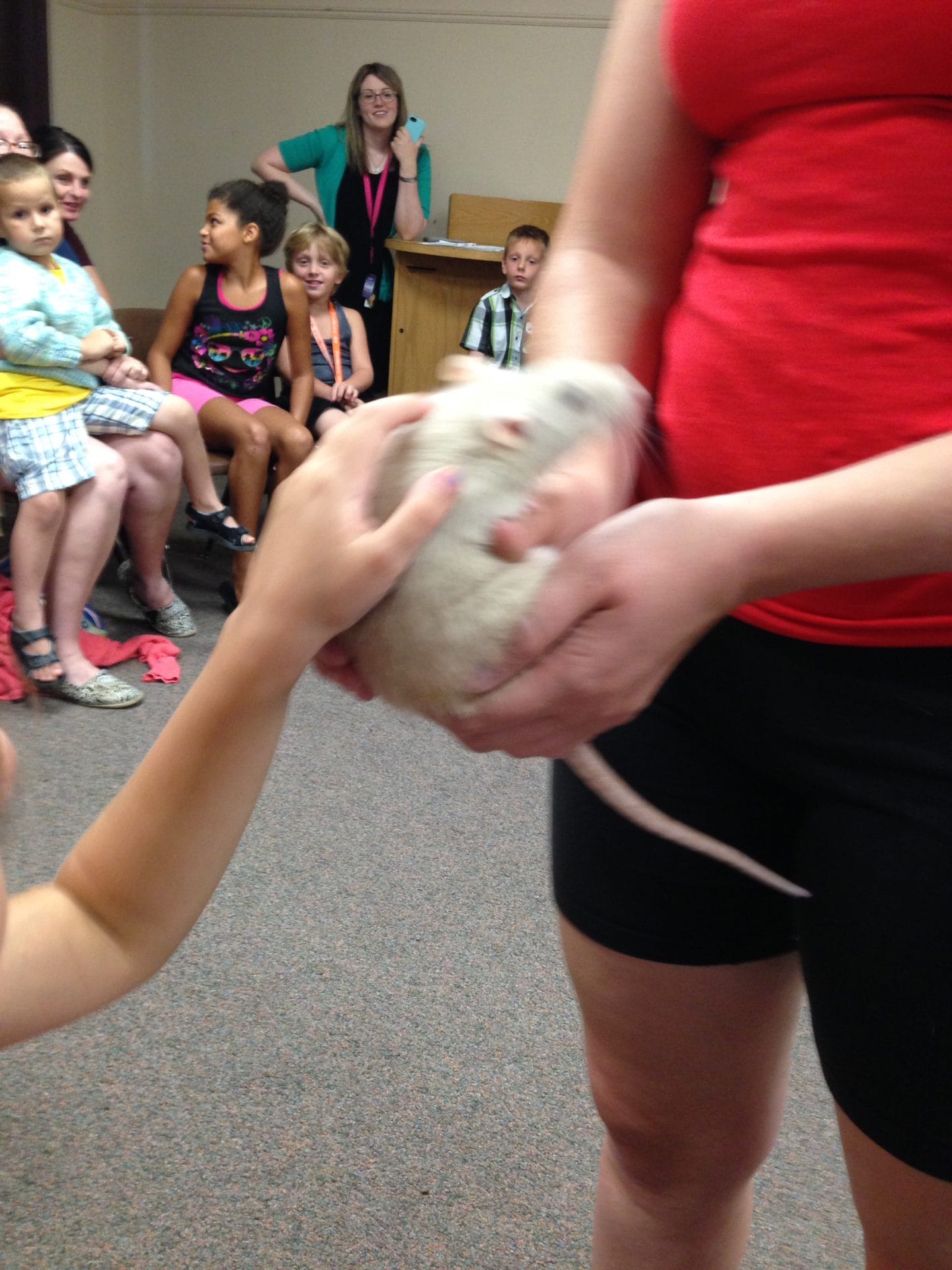 Animal show by elevins | Aug 1, 2016 | 4yrs and Beyond One of my favorite events at the library so far: Collette Bogle’s Animal Show. I got to see bunnies, a chinchilla, and a sugar glider, and all sorts of animals. I got to help a dove fly, and I got to hold a rooster. Related Posts Puppet showIt's always nice to have a puppet show before bed. Talent showAfter dinner I organized s talent show. Everyone had to perform. Puppet showPoppy came over & brought me these cool things from Chik-Fil-a: daddy & I put…