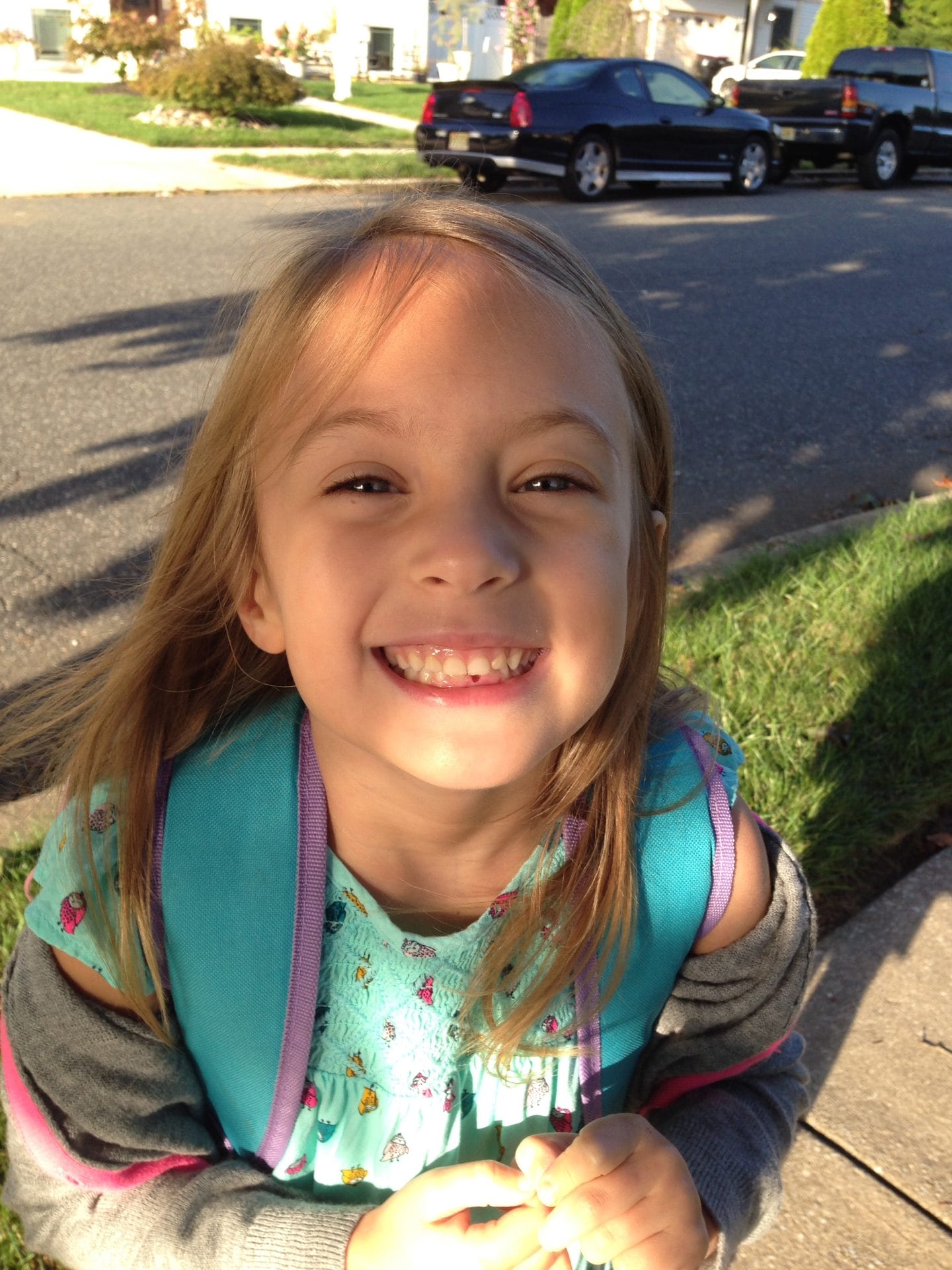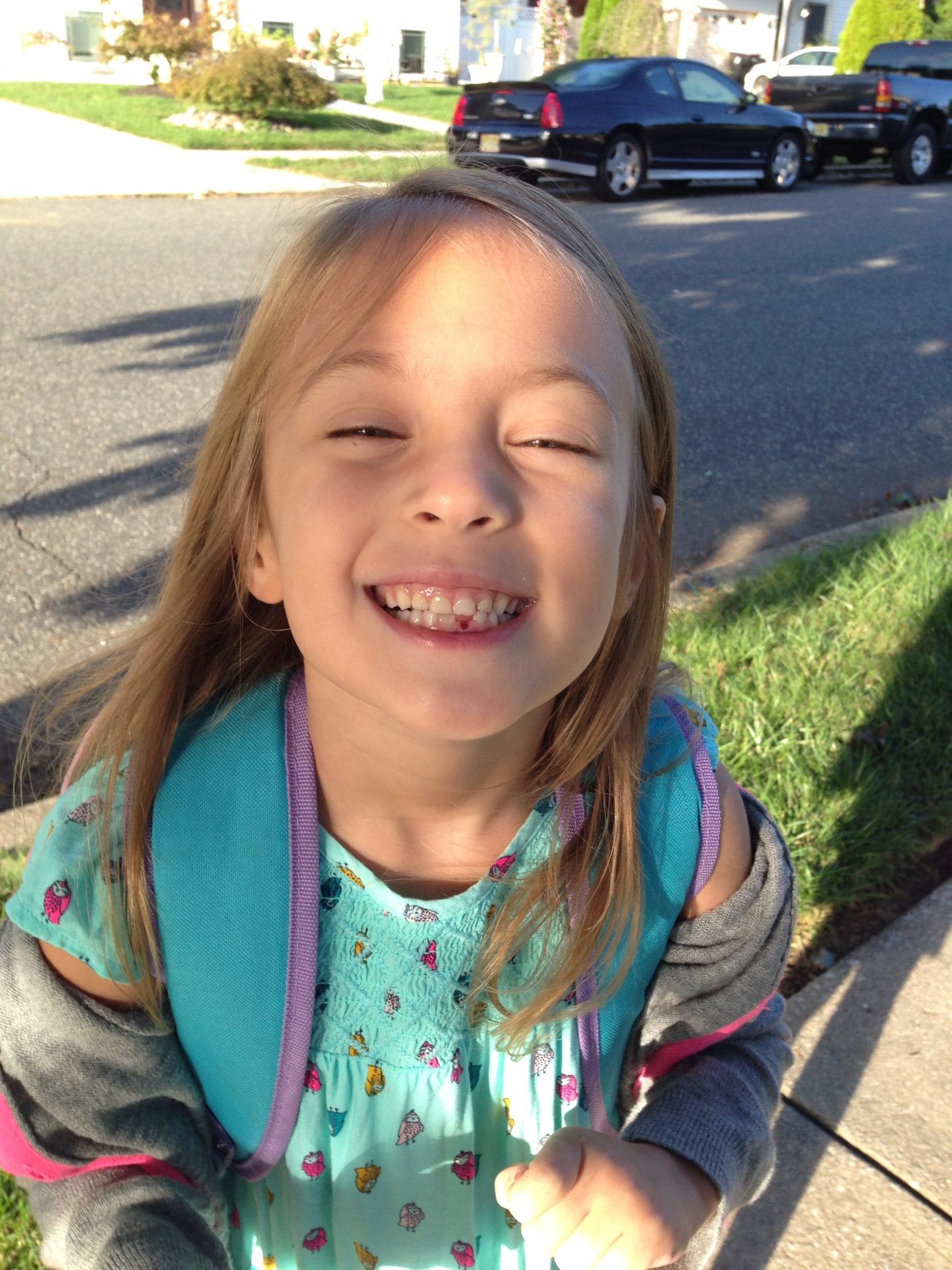 Today is picture day, so in the grand tradition of first graders who came before me, I made sure this picture would include a missing tooth. Yep, I pulled it out right as we were getting ready to go to the bus stop.