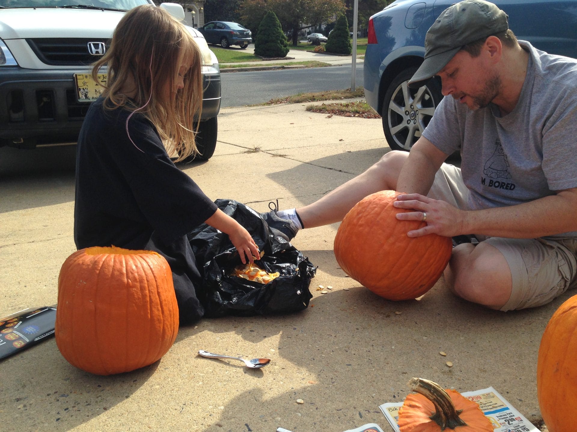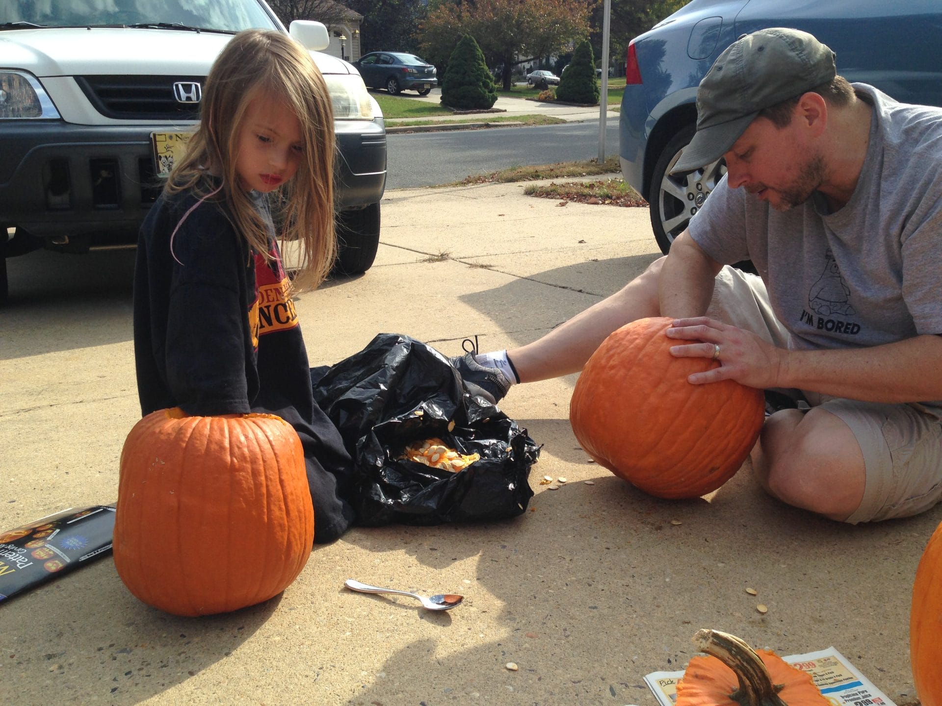 Pumpkin carvingI'm helping daddy scoop the guts out of my pumpkin. Fun and messy!
