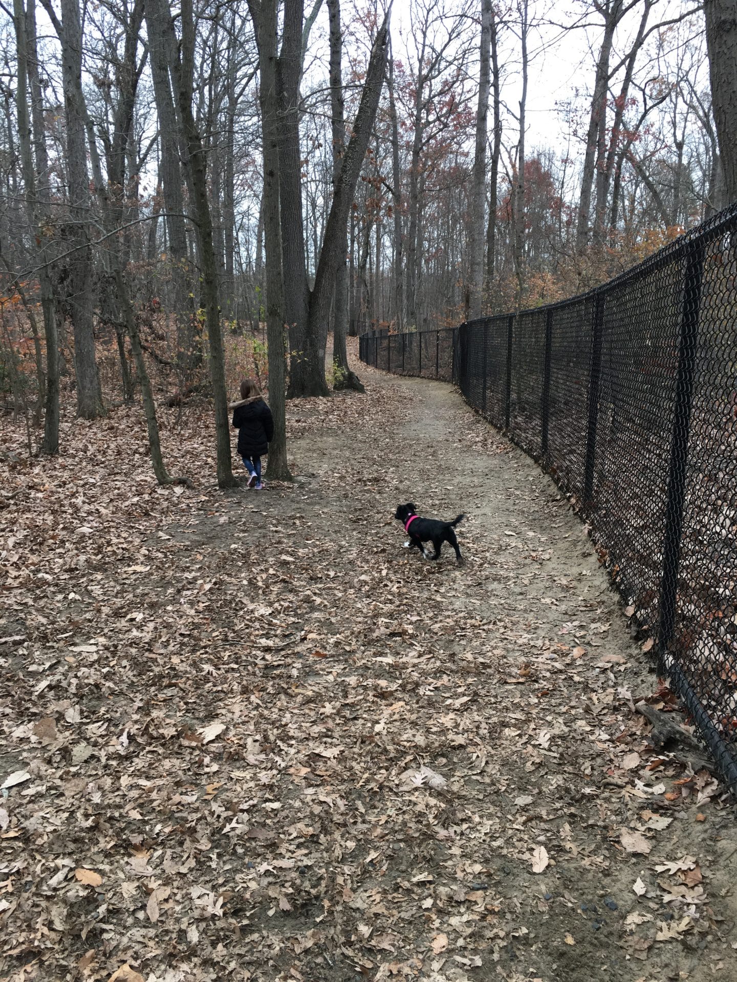 We’re heading to grandmom and poppy’s for dinner so we brought belle to the dog park to tire her out.