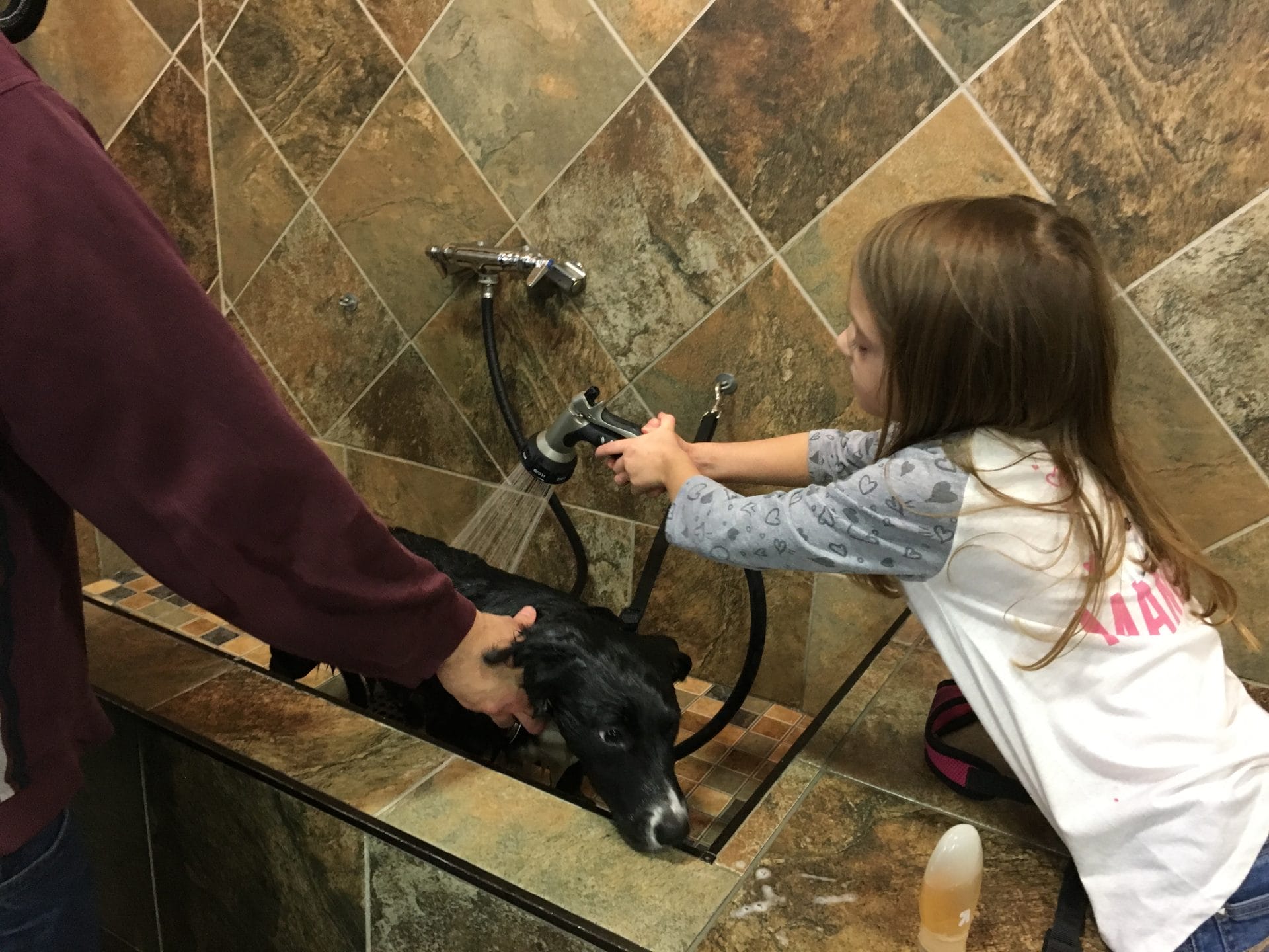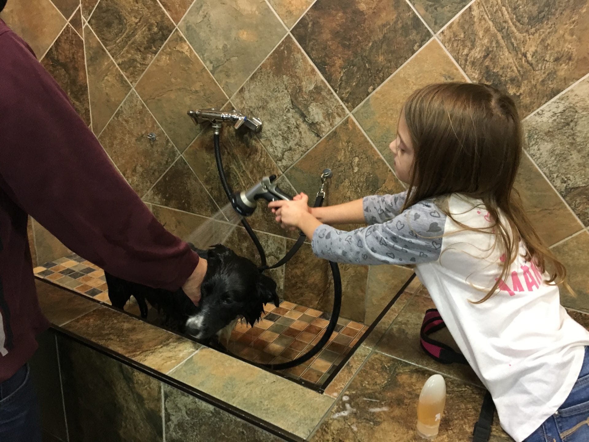 Belle had a great time at the dog park yesterday and today – she found lots of playmates, and got to play in the mud. But all that fun made her a dirty, smelly puppy. So we took her to the dog wash at PetValu. Mommy said this was much easier than bathing her at home, where she’d have to clean the mud out of the tub and wash a bunch of towels.