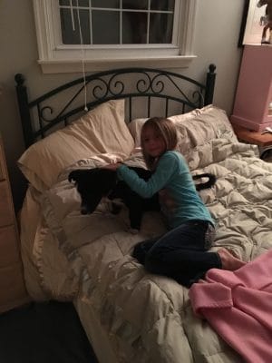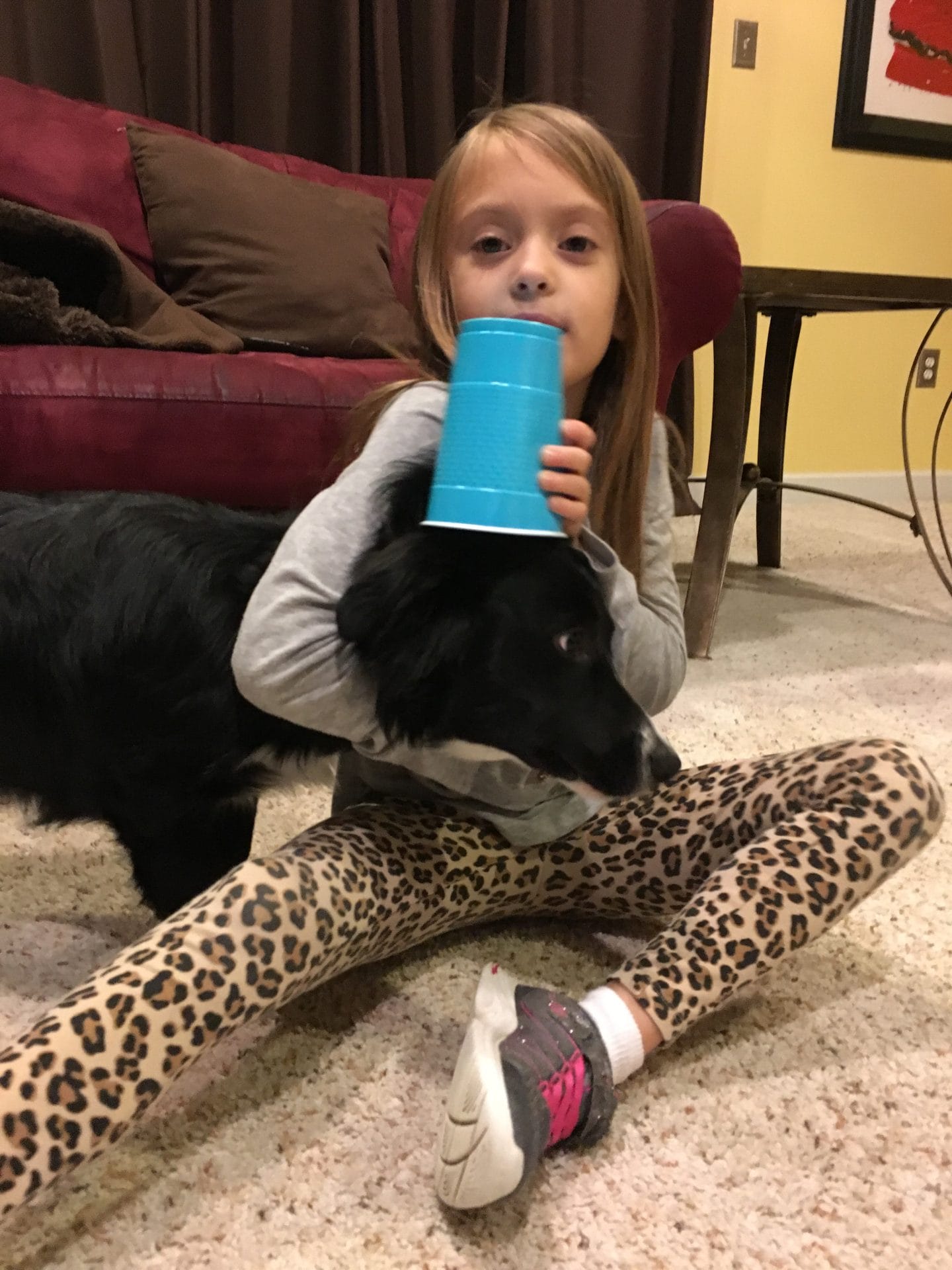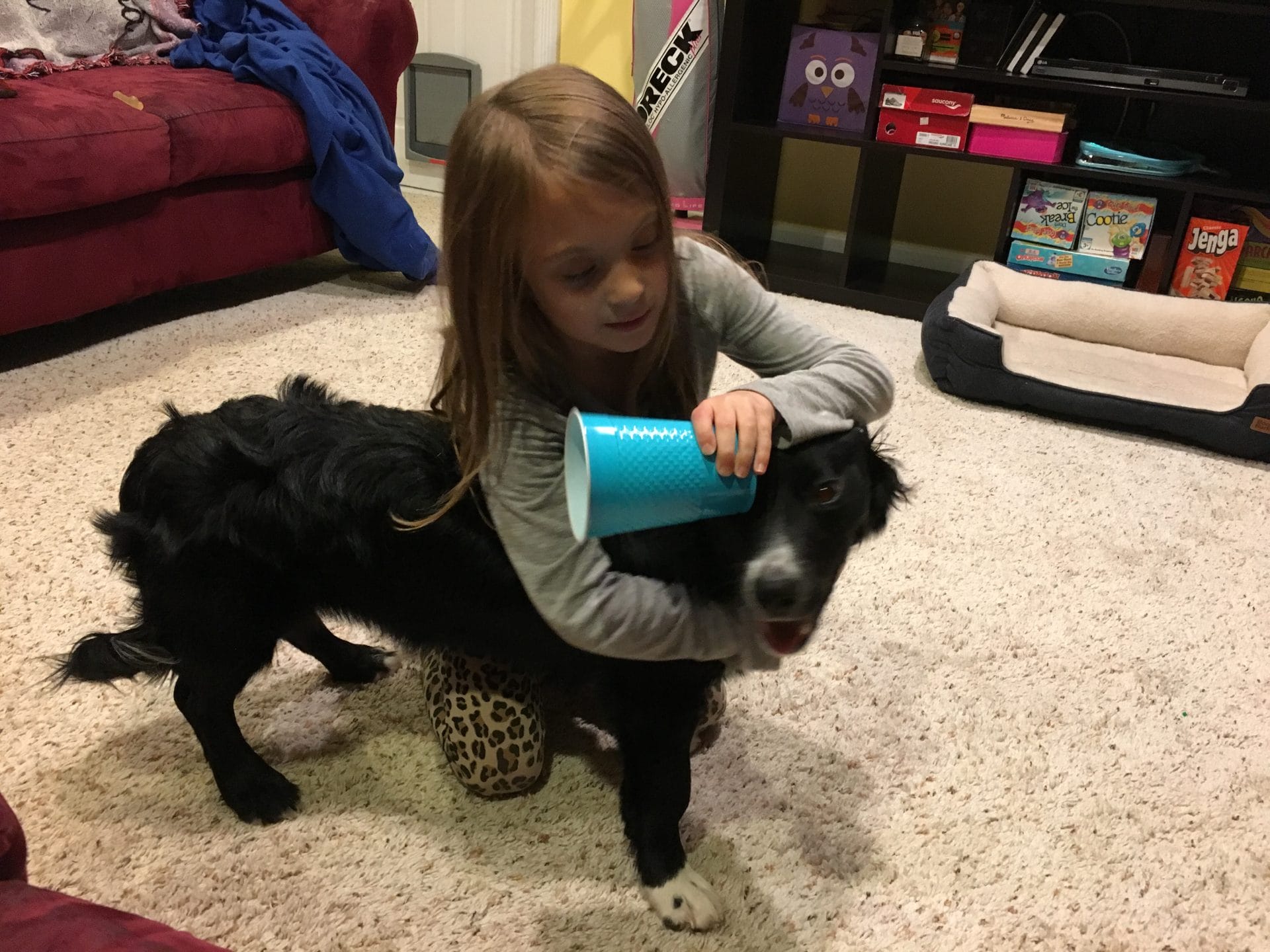 I’m trying to make her wear a cup on her head. She’s not thrilled.