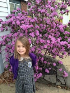 I love our flowersAfter school and errands I wanted my picture taken with our Rhododendron flowers.