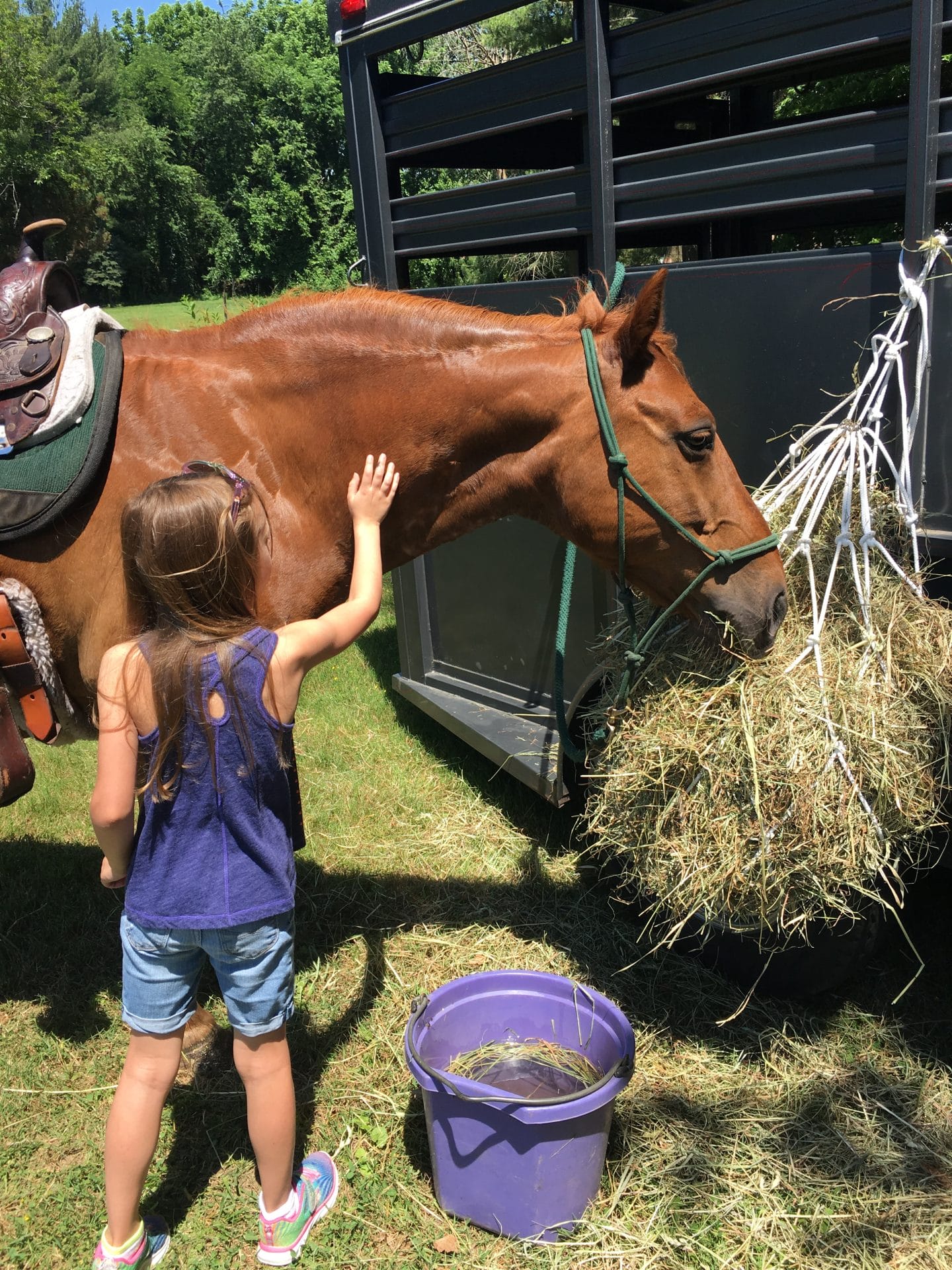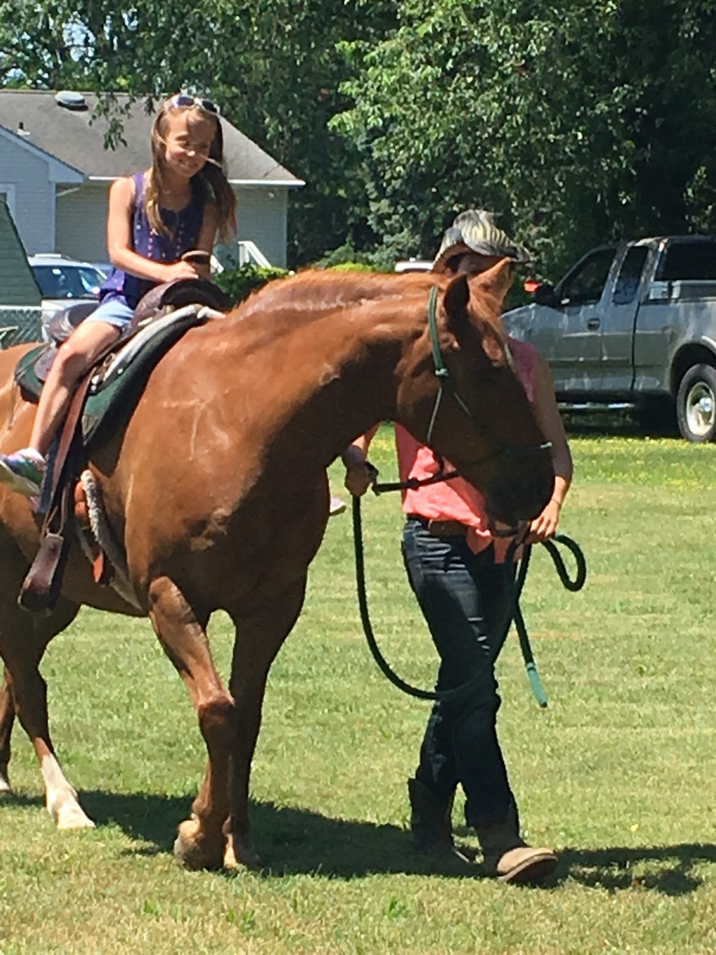 Our vet has a yearly fundraiser to help people who have difficulty with vet bills – and we always go. This year we took Belle (though she didn’t make it into any photos. I got to hang with McGruff, ride a pony (Tucker), visit with the goats (Beau & Grace), pet K-9 Arrow, bounce in the bounce house, and get a pretty purple & silver heart painted on my arm. We were melty & hot – but it was fun!