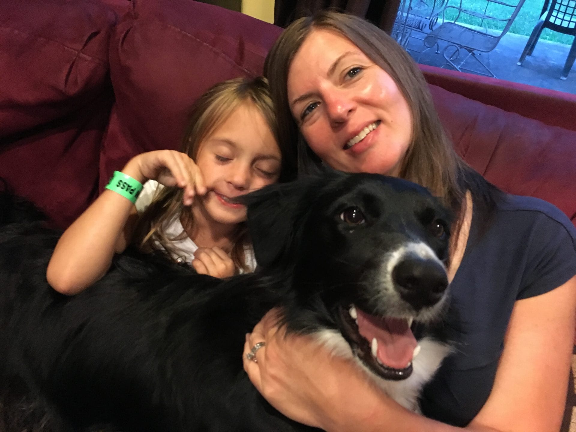 Torturing BelleI'm trying to make her wear a cup on her head. She's not thrilled.