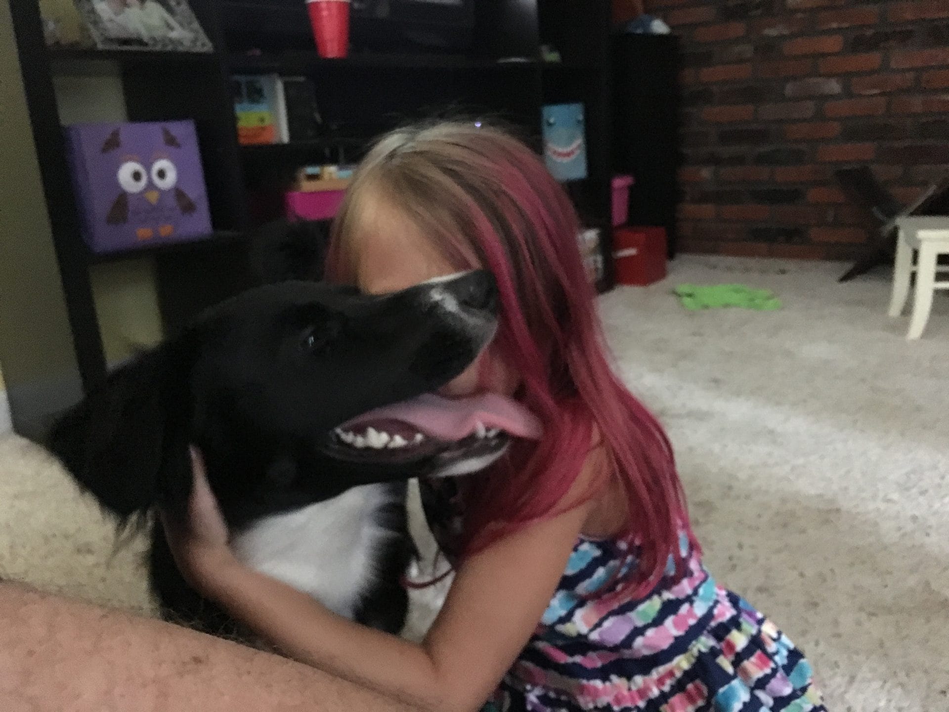 Torturing BelleI'm trying to make her wear a cup on her head. She's not thrilled.