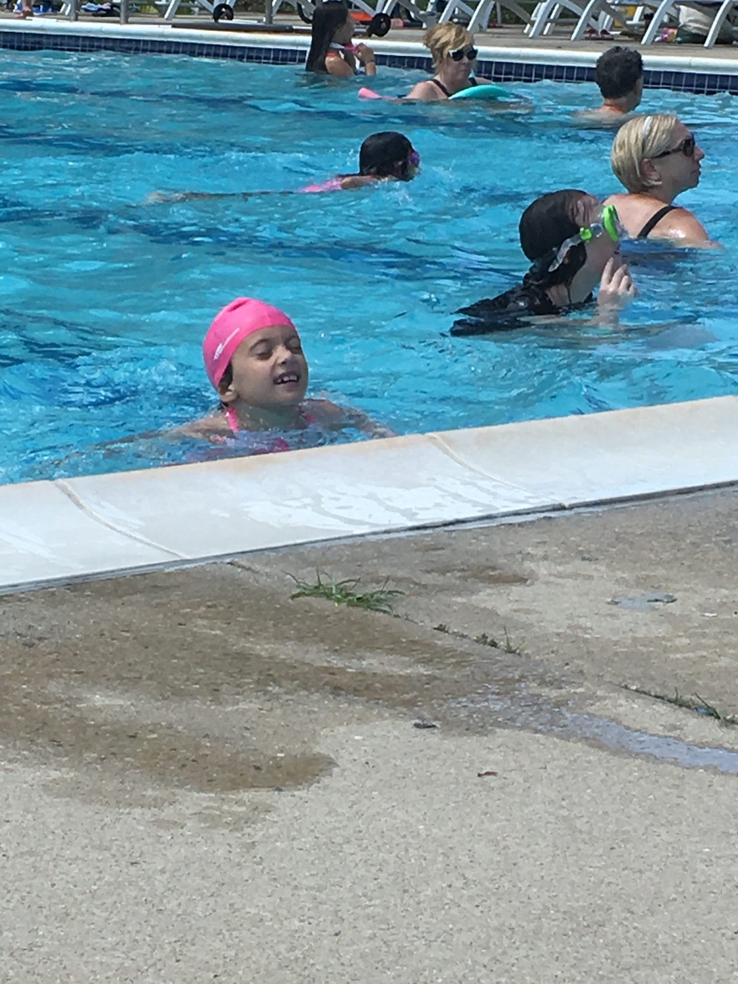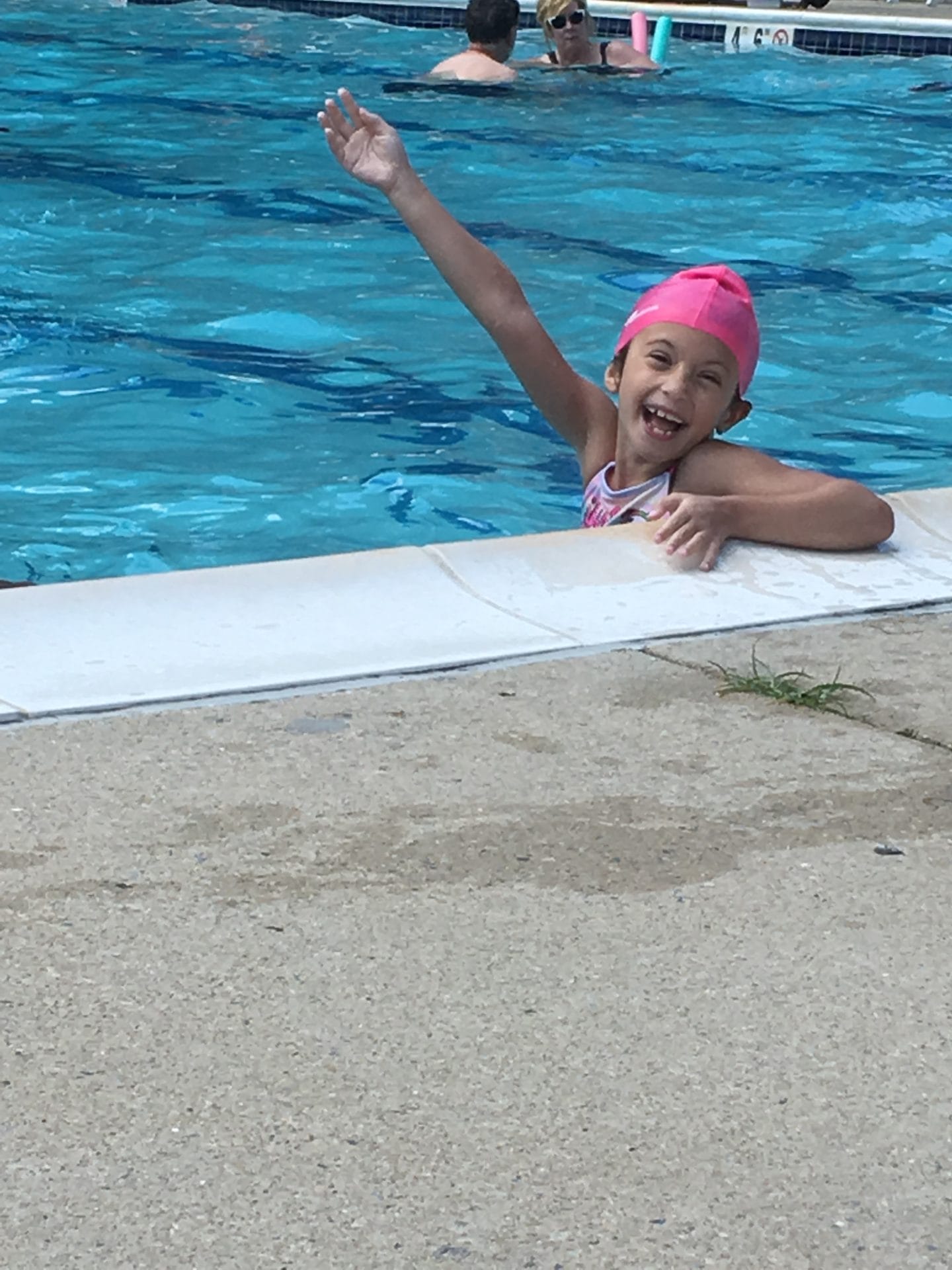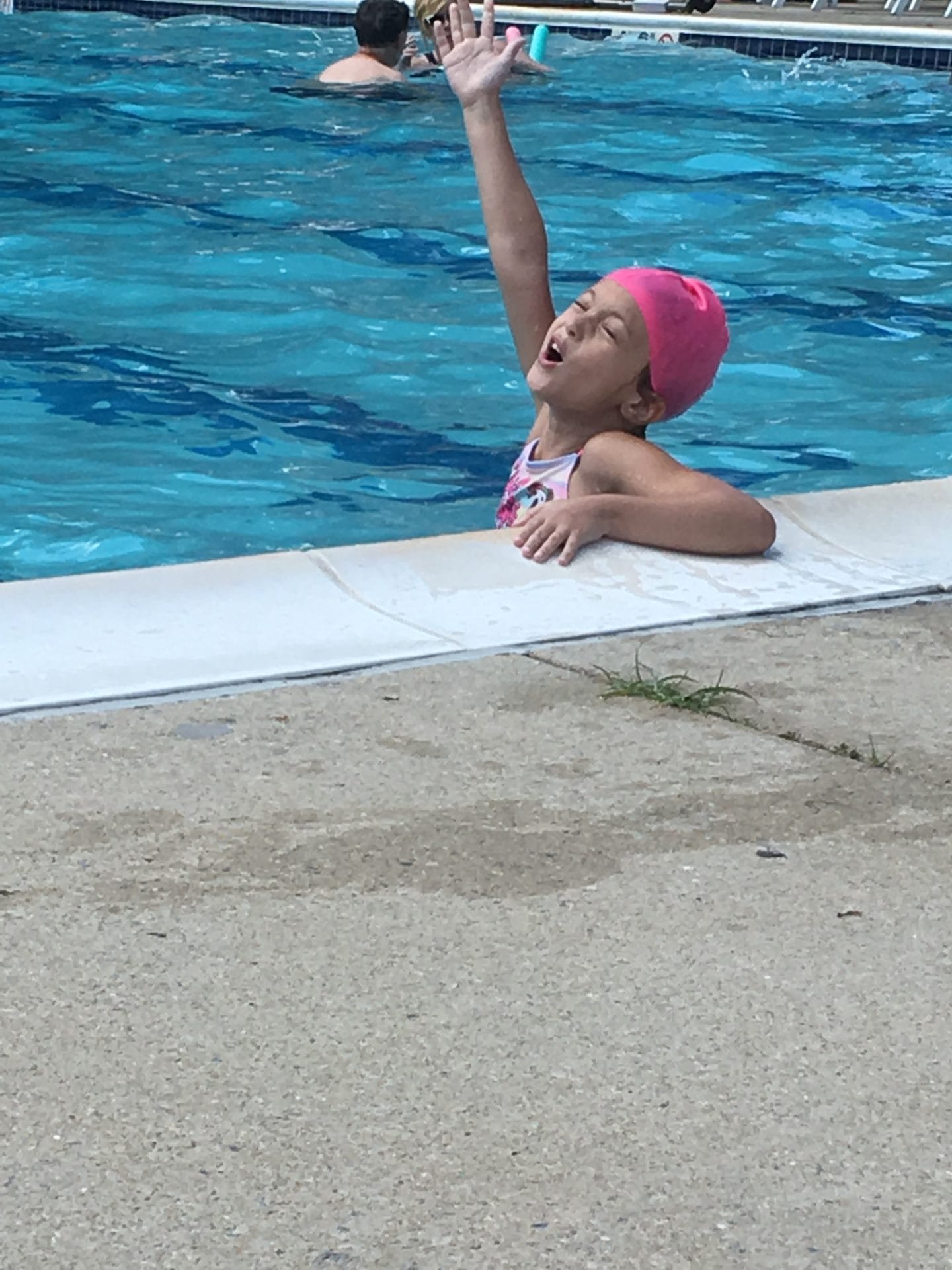 I love being at the pool, but I’m not a big fan of my new swim cap. Mommy & daddy say I have to wear it so I don’t bleach out my pink hair, but I’m still not thrilled. Between that & the fact that none of my friends were here today, mommy & I didn’t stay st the pool very long.