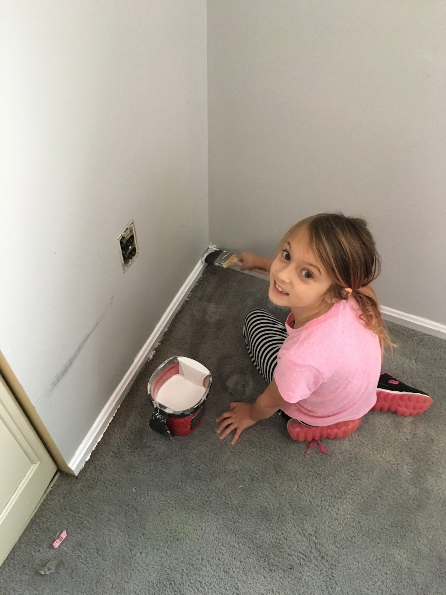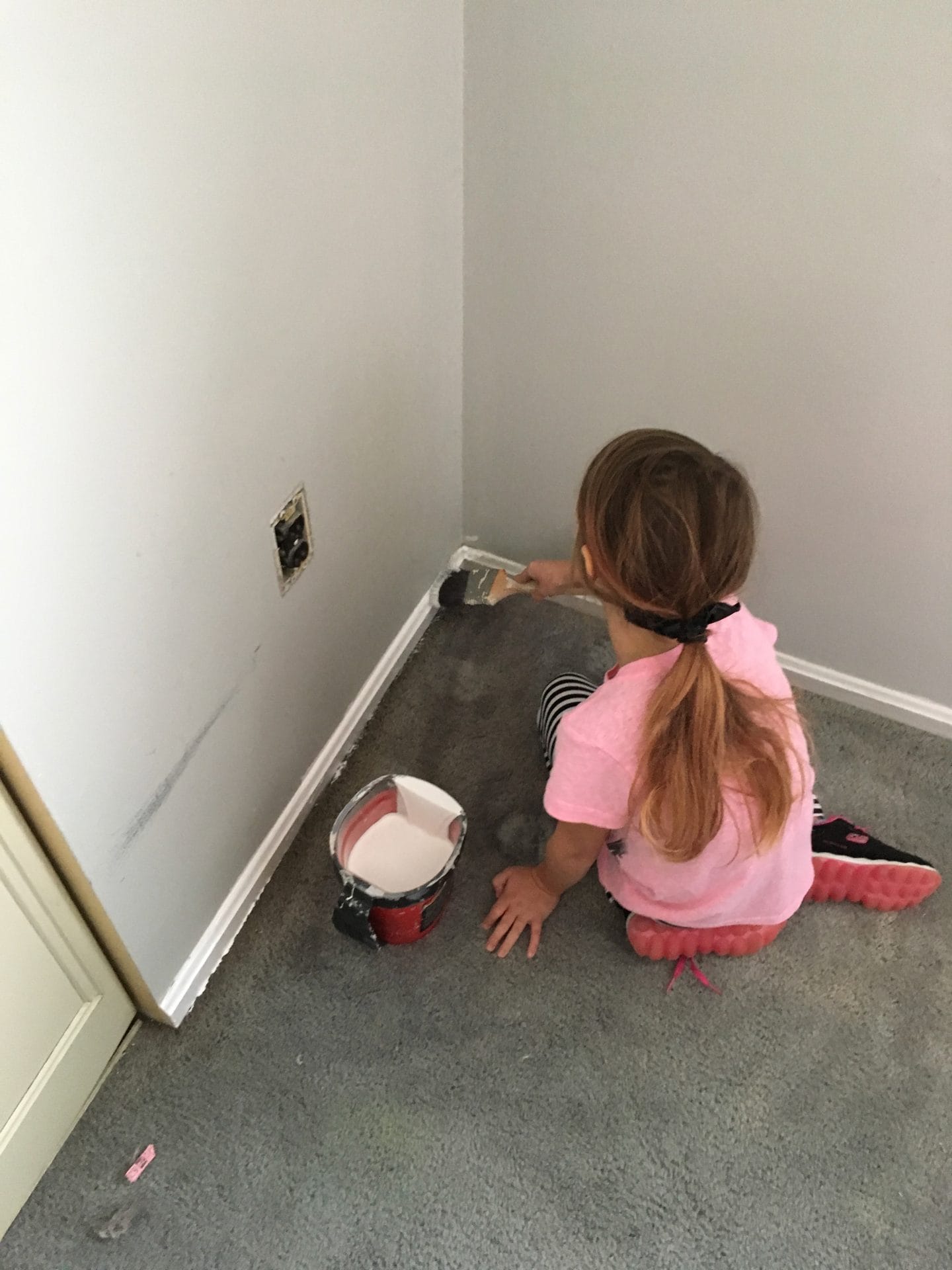Dad and I are working to prepare my new room. First spackling. Then touching up the trim.