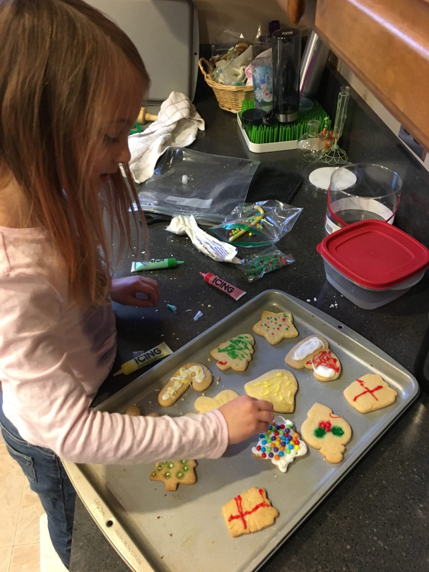 Decorating cookies by wlevins | Dec 24, 2017 | 4yrs and Beyond Mom and I baked cookies. Then I decorated them. Dad only ate them – including my special snowman. But I forgave him. Related Posts Decorating cookiesThis is my second batch of sugar cookies. This time with red icing. Santa cookiesGotta leave snacks for the big guy! Pennant decoratingAnother fun program at the library - letting me get my creativity on.